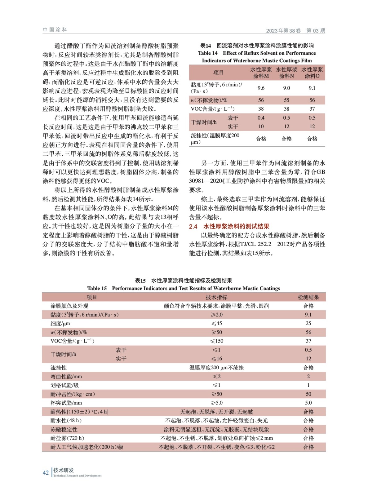 使用妥爾油脂肪酸制備合成水性厚漿涂料用醇酸樹脂,通過探究脂肪酸的種類及含量、酸性樹脂改性劑對叔丁基苯甲酸的用量及回流溶劑的選擇對水性醇酸樹脂的制備過程及產品性能指標的影響得出水性厚漿涂料用醇酸樹脂優化配方。