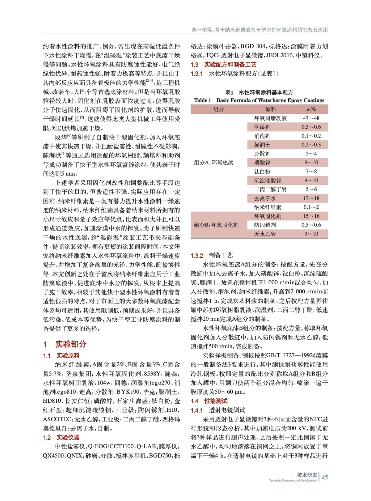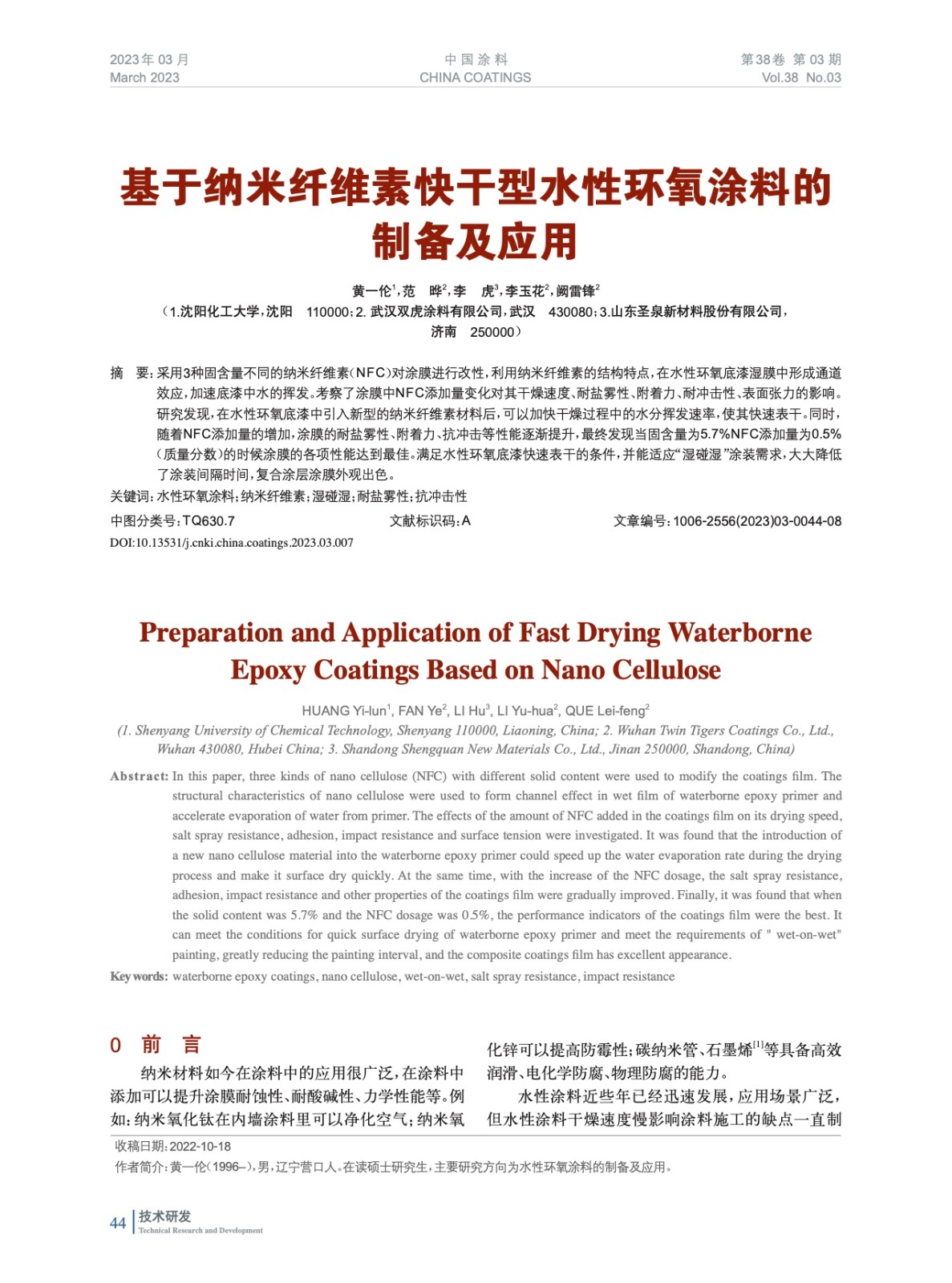 基于納米纖維素快干型水性環(huán)氧涂料的制備及應(yīng)用