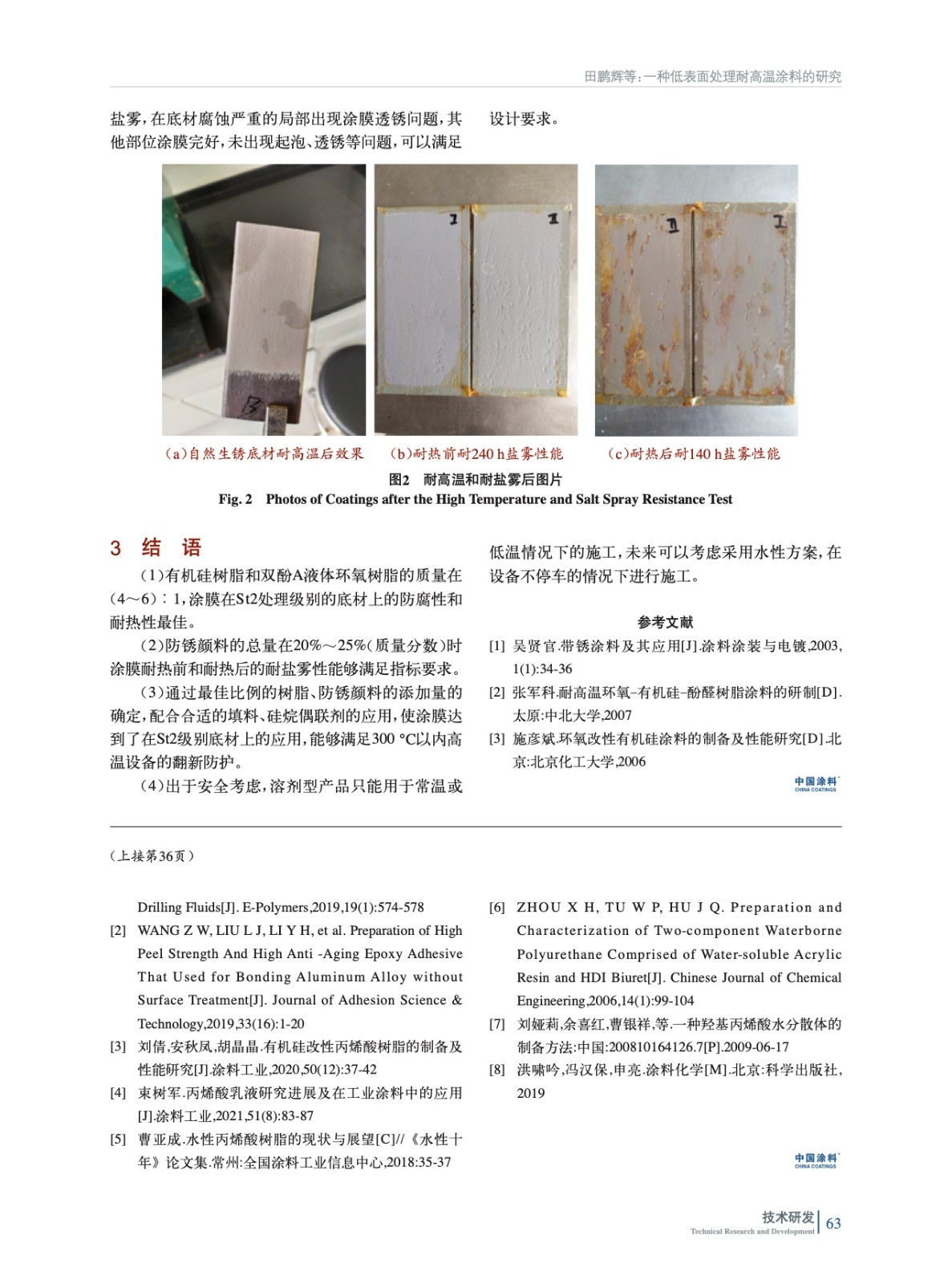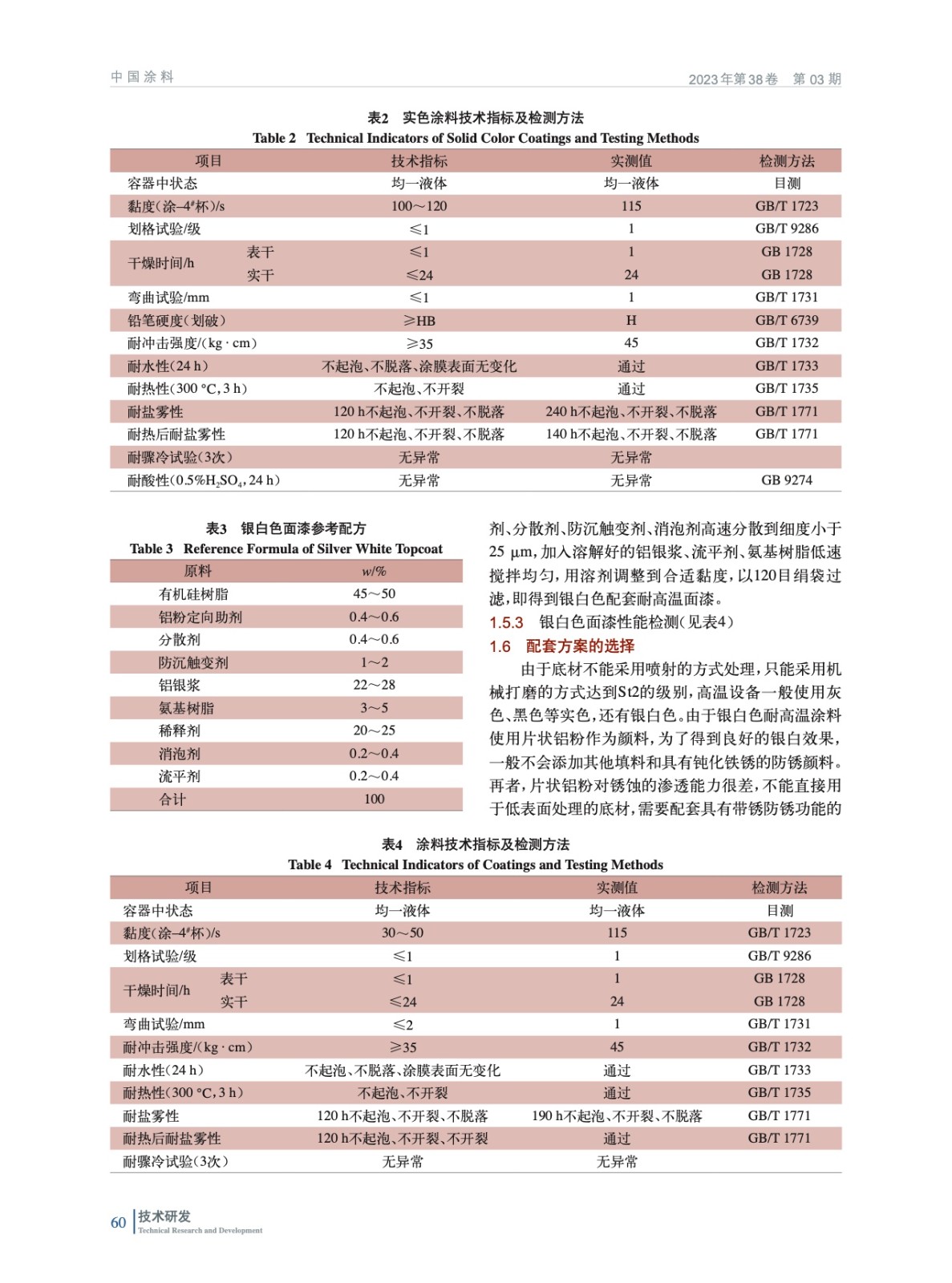 摘要:介紹了一種用于高溫設(shè)備翻新維護(hù)、底材處理只能達(dá)到St2級(jí)別的耐高溫涂料,在按照HG/T 4564—2013標(biāo)準(zhǔn)4.3.1要求制備的底材和自然環(huán)境生銹的底材上同時(shí)進(jìn)行了性能檢測(cè)。實(shí)驗(yàn)結(jié)果表明,該低表面處理耐高溫涂料可以滿足高溫設(shè)備的防腐要求,并解決了底材不能噴射處理高溫設(shè)備的翻新維護(hù)問題。