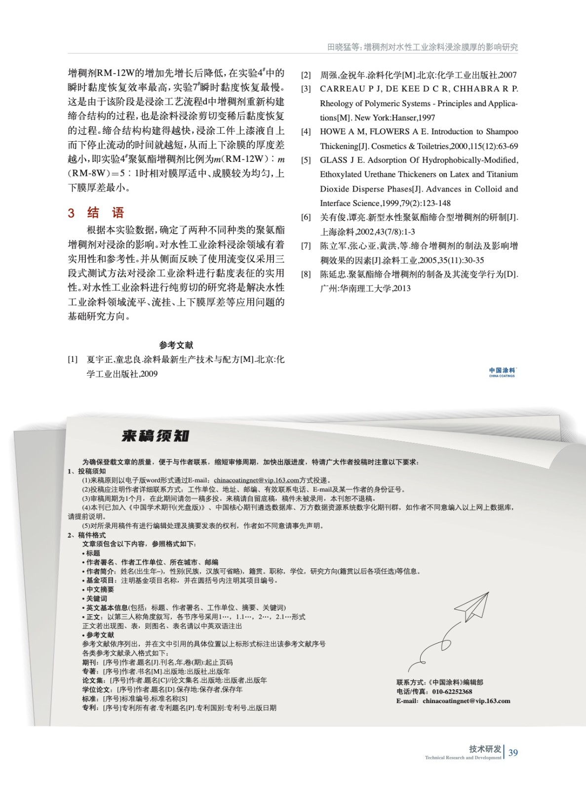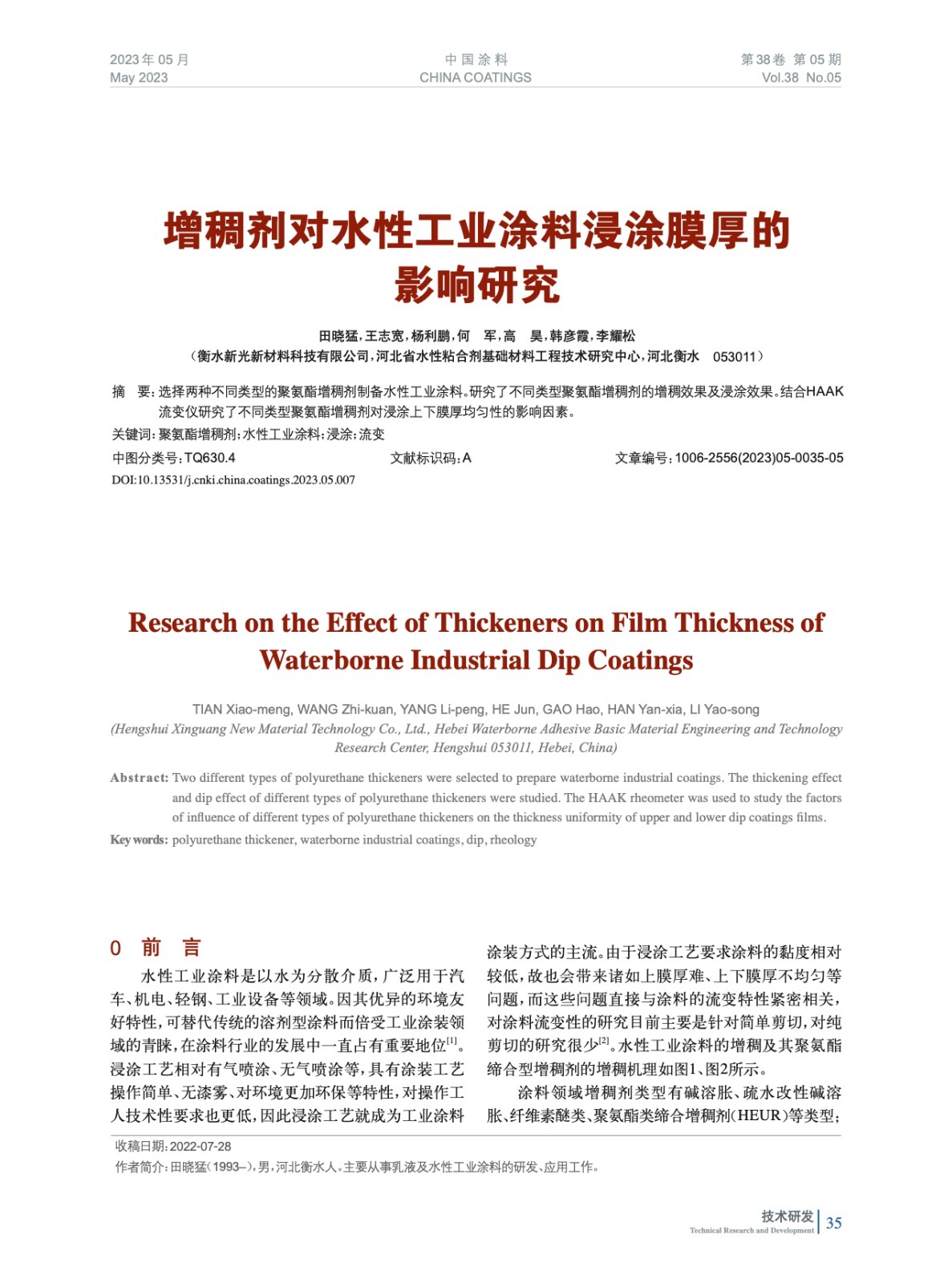 增稠劑對水性工業涂料浸涂膜厚的影響研究