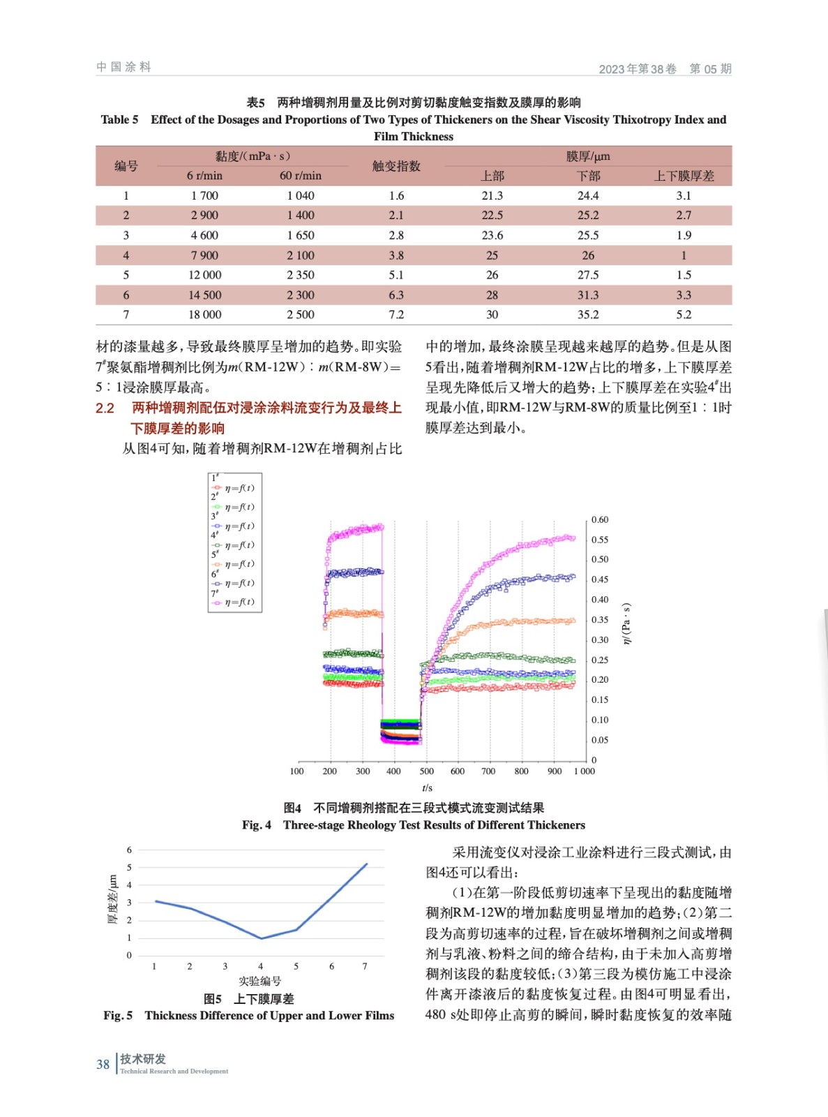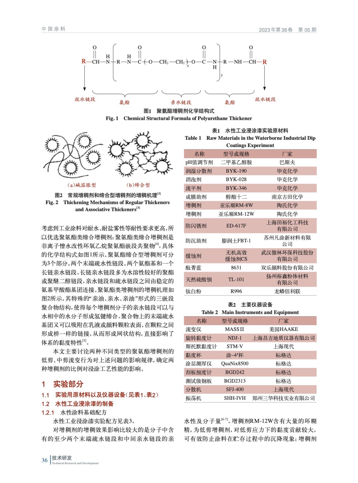 選擇兩種不同類型的聚氨酯增稠劑制備水性工業涂料。研究了不同類型聚氨酯增稠劑的增稠效果及浸涂效果。結合HAAK流變儀研究了不同類型聚氨酯增稠劑對浸涂上下膜厚均勻性的影響因素。