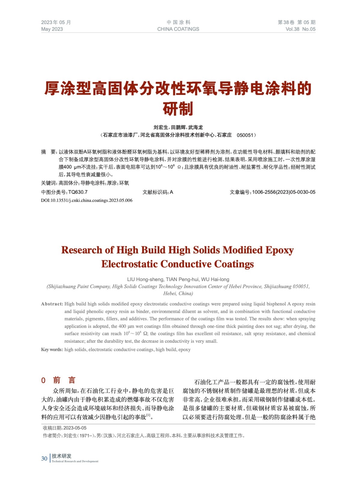 本文系作者@劉宏生,田鵬輝,武海龍 授權(quán)中國(guó)涂料網(wǎng)發(fā)表,并經(jīng)中國(guó)涂料網(wǎng)編輯,未經(jīng)允許不得轉(zhuǎn)載,如需轉(zhuǎn)載請(qǐng)聯(lián)系chinacoatingnet@vip.163.com