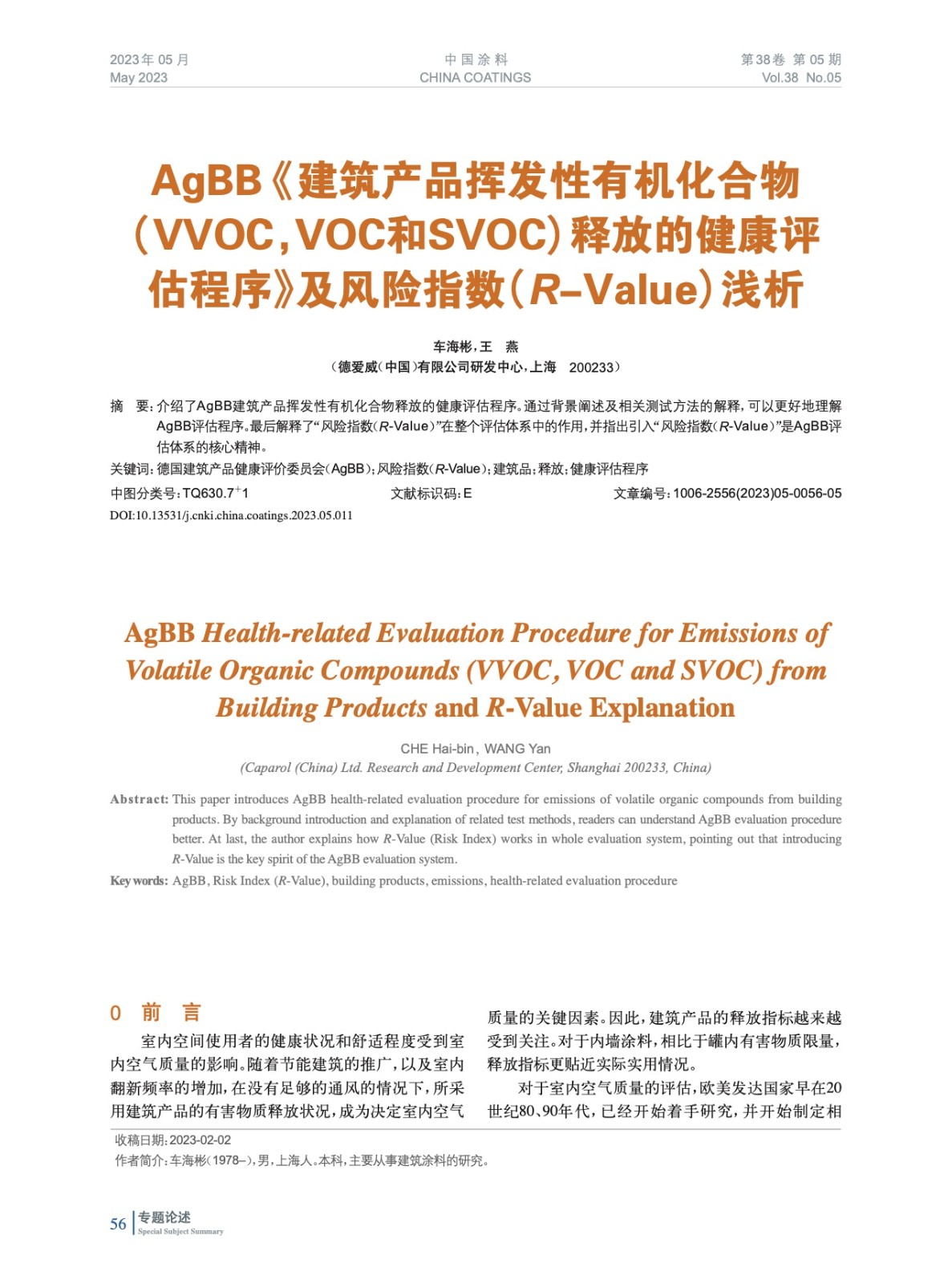 AgBB《建筑產(chǎn)品揮發(fā)性有機化合物(VVOC,VOC和SVOC)釋放的健康評估程序》及風險指數(shù)(R-Value)淺析
