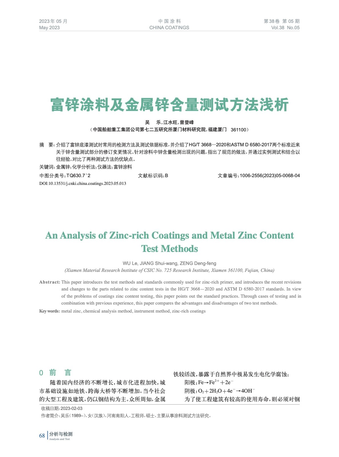 本文系作者@吳 樂,江水旺,曾登峰 授權中國涂料網發表,并經中國涂料網編輯,未經允許不得轉載,如需轉載請聯系chinacoatingnet@vip.163.com