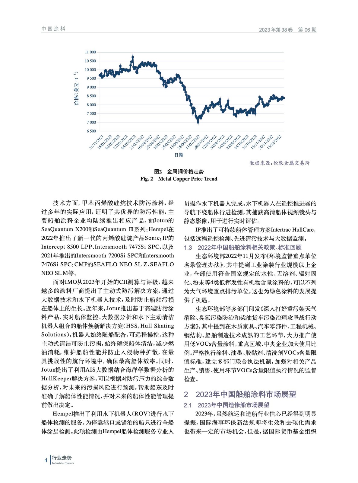 摘要:綜述了2022年中國造修船市場(chǎng)及船舶涂料市場(chǎng)情況,回顧梳理了2022年中國船舶涂料技術(shù)進(jìn)展及相關(guān)政策和標(biāo)準(zhǔn),并對(duì)2023年中國造船及船舶涂料市場(chǎng)進(jìn)行了展望。