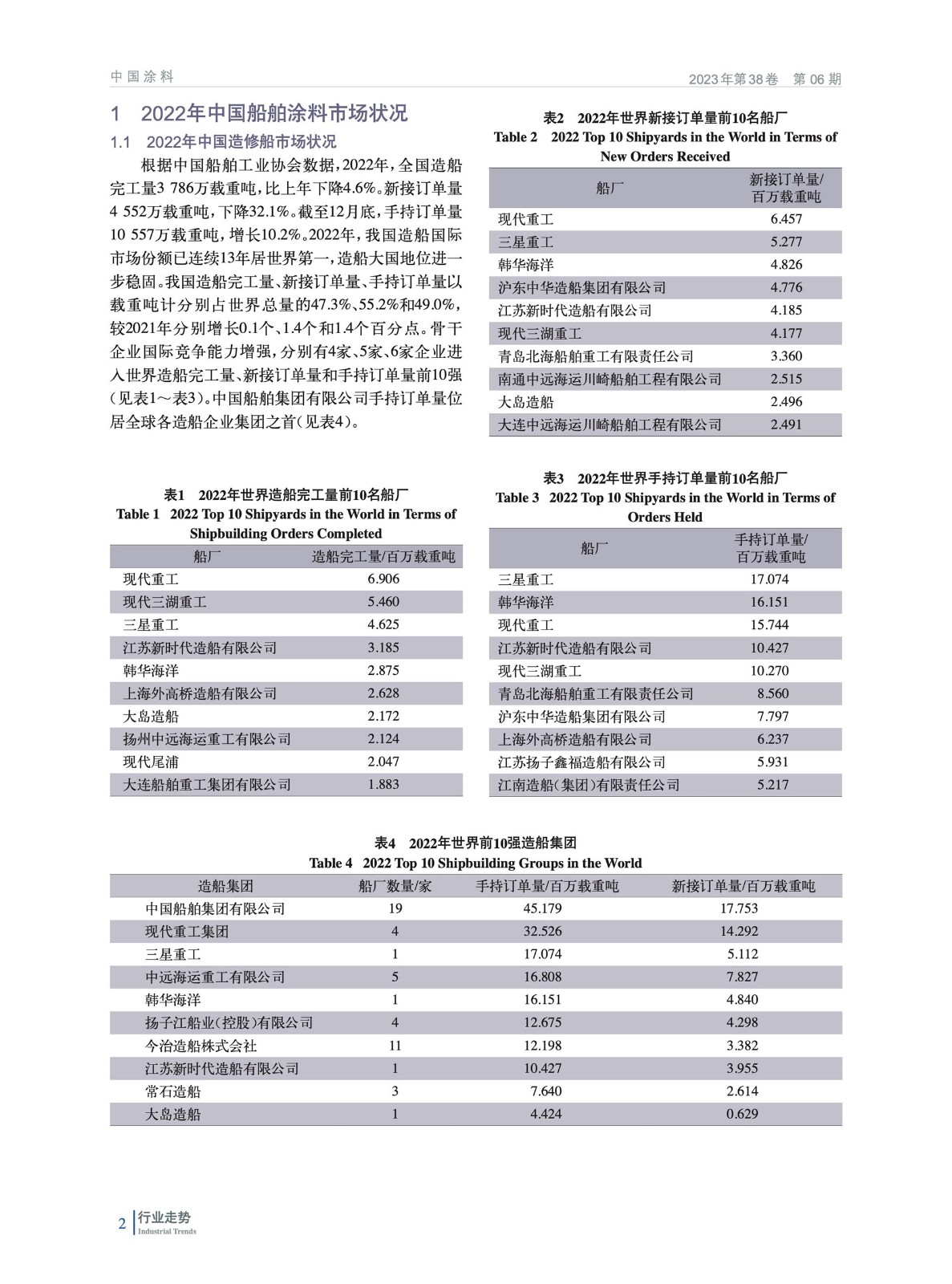 2022年中國船舶涂料市場(chǎng)狀況和2023年展望
