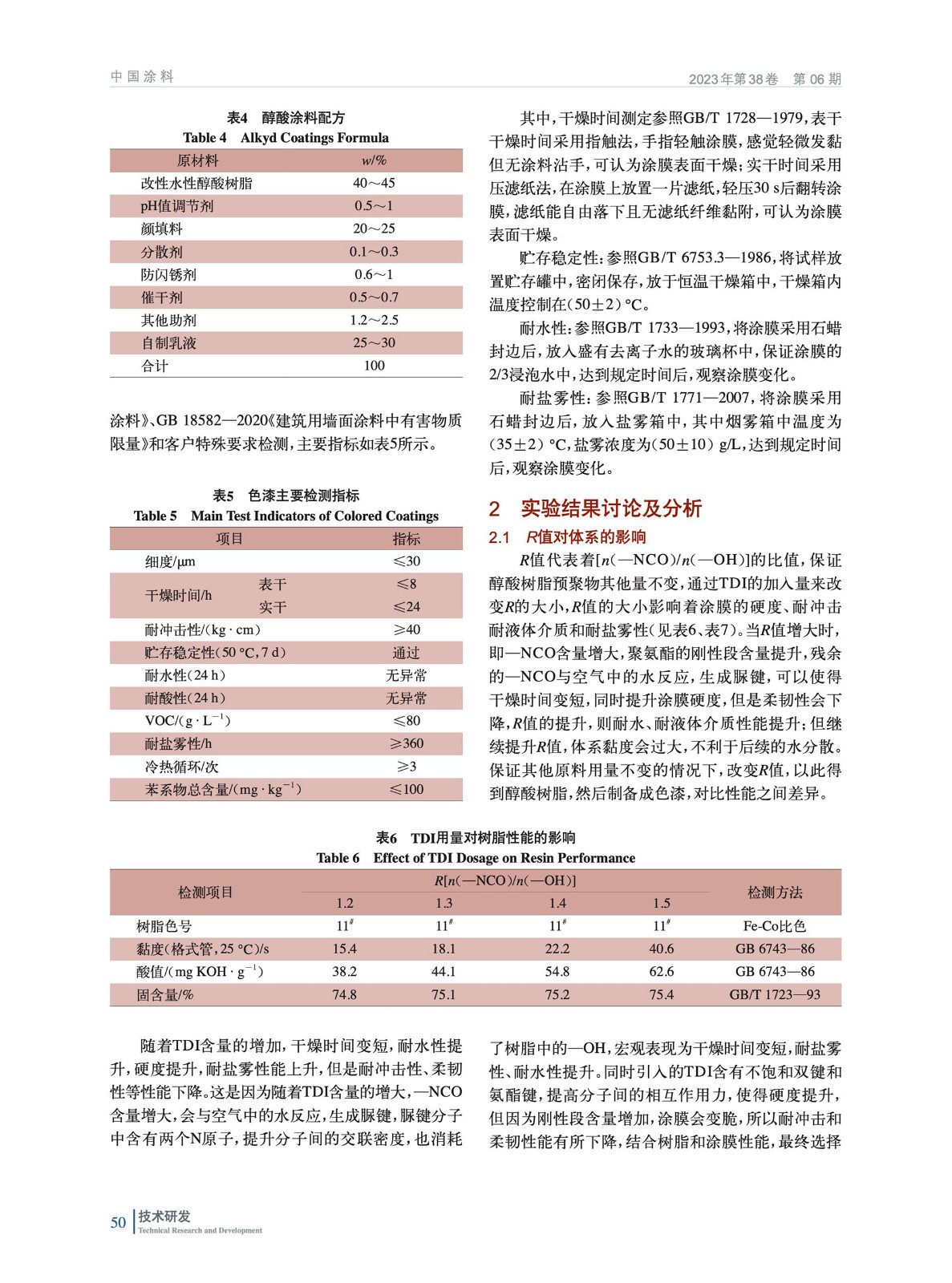 討論了R值[n(—NCO)/n(—OH)]、最終酸值和親水單體的用量3種因素對水性醇酸樹脂性能的影響。通過優選,最終獲得了性價比、環境友好性能均佳的樹脂,并制備了符合標準和滿足客戶流水線需求的色漆產品。
