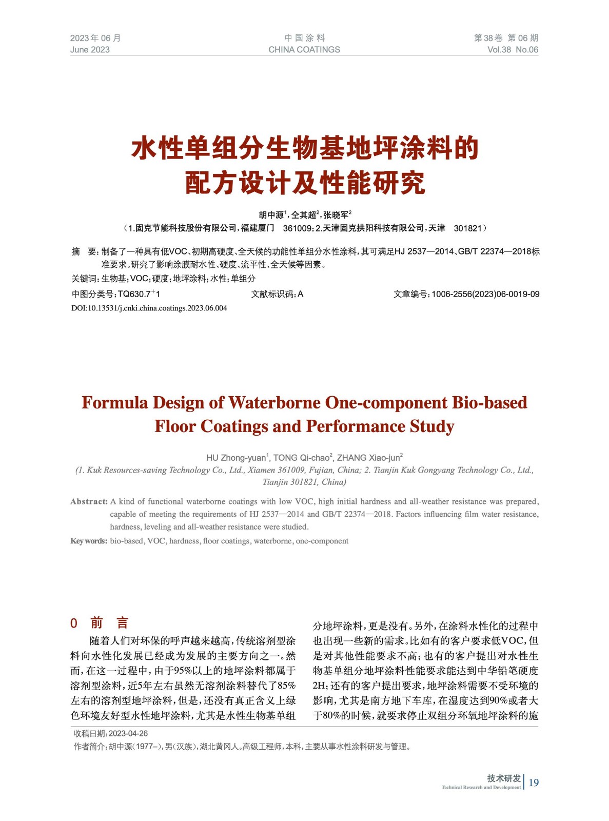 本文系作者@胡中源,仝其超,張曉軍 授權中國涂料網發表,并經中國涂料網編輯,未經允許不得轉載,如需轉載請聯系chinacoatingnet@vip.163.com