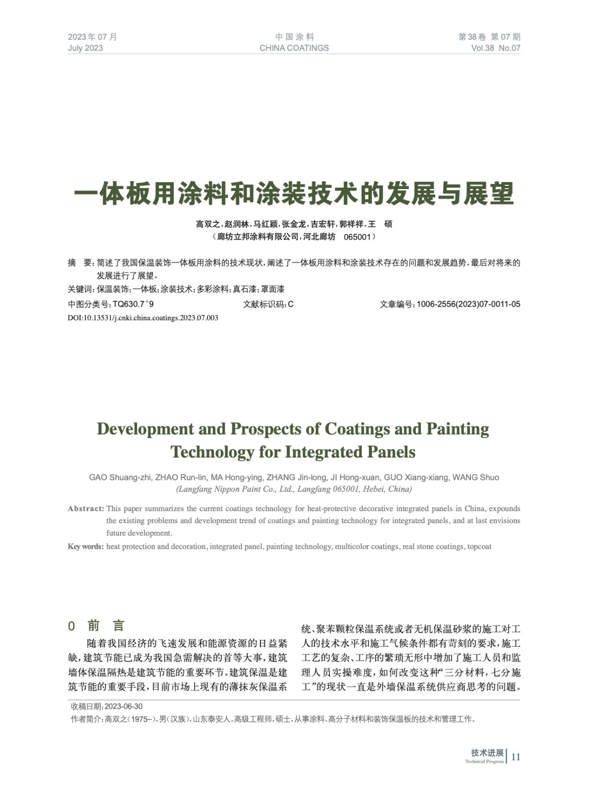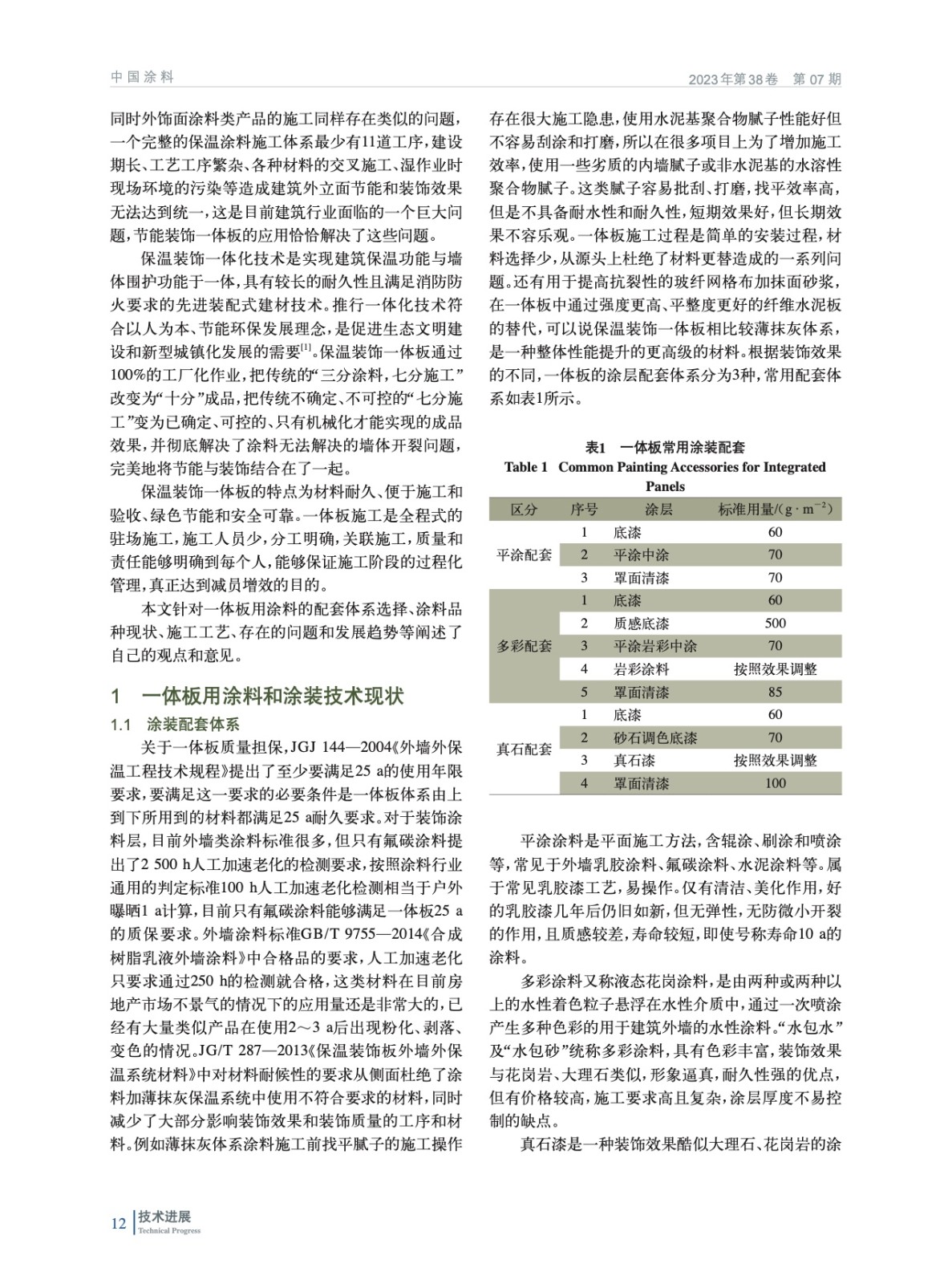 簡述了我國保溫裝飾一體板用涂料的技術現狀,闡述了一體板用涂料和涂裝技術存在的問題和發展趨勢,最后對將來的發展進行了展望。