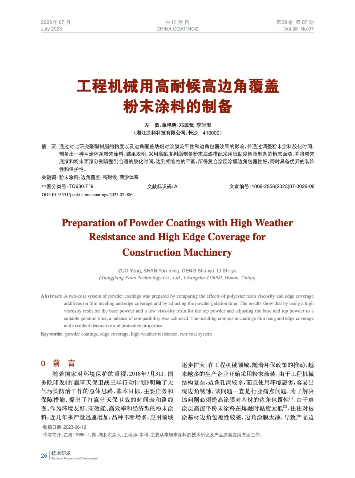 工程機械用高耐候高邊角覆蓋粉末涂料的制備