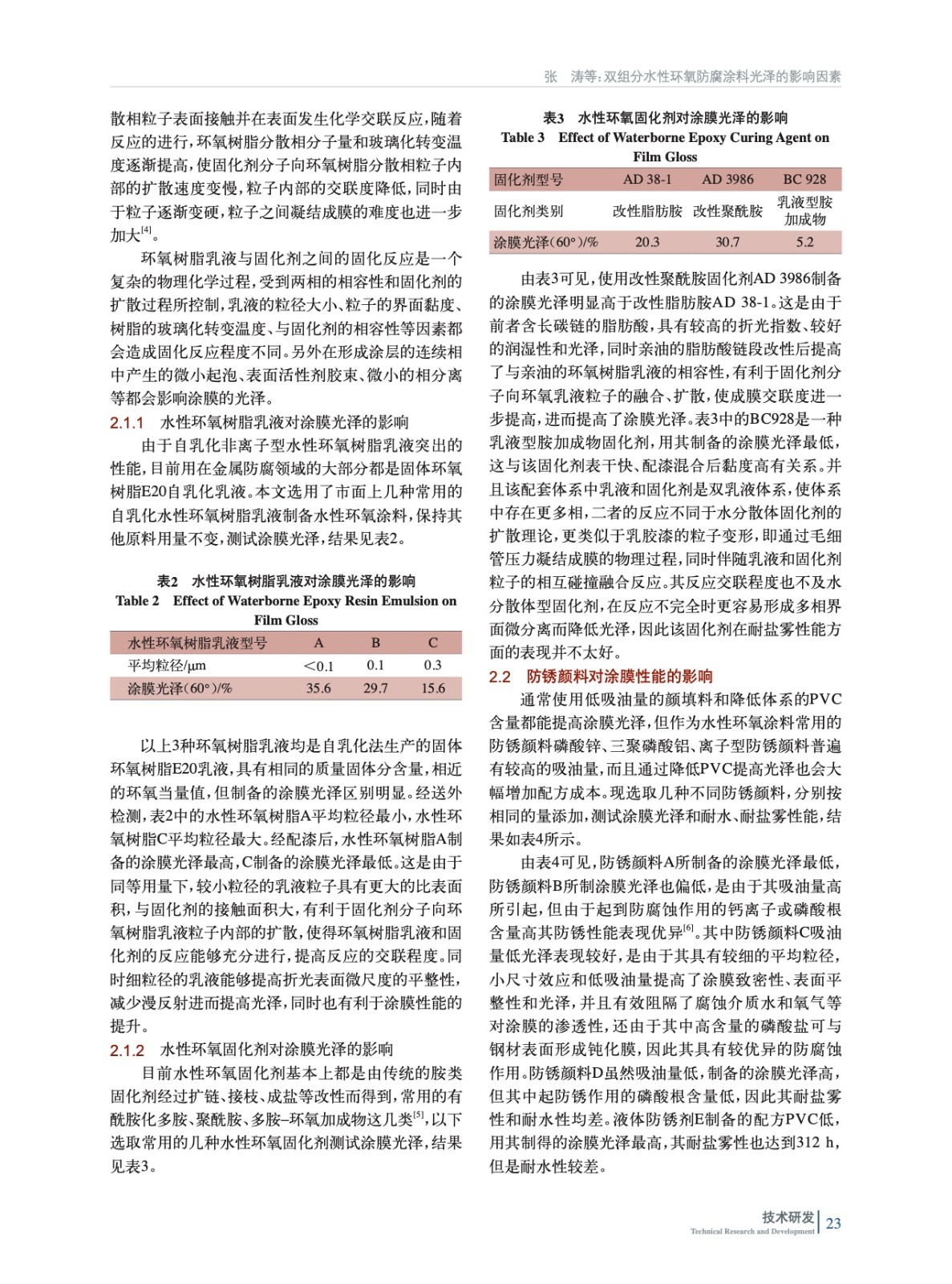 探討了雙組分水性環氧防腐蝕涂料光澤的影響因素,分析了在保證耐鹽霧性能的前提下,水性環氧樹脂乳液粒徑、乳液和固化劑相容性、防銹顏料種類、成膜助劑、流變助劑和涂料細度等一定程度上對最終涂膜光澤的影響。
