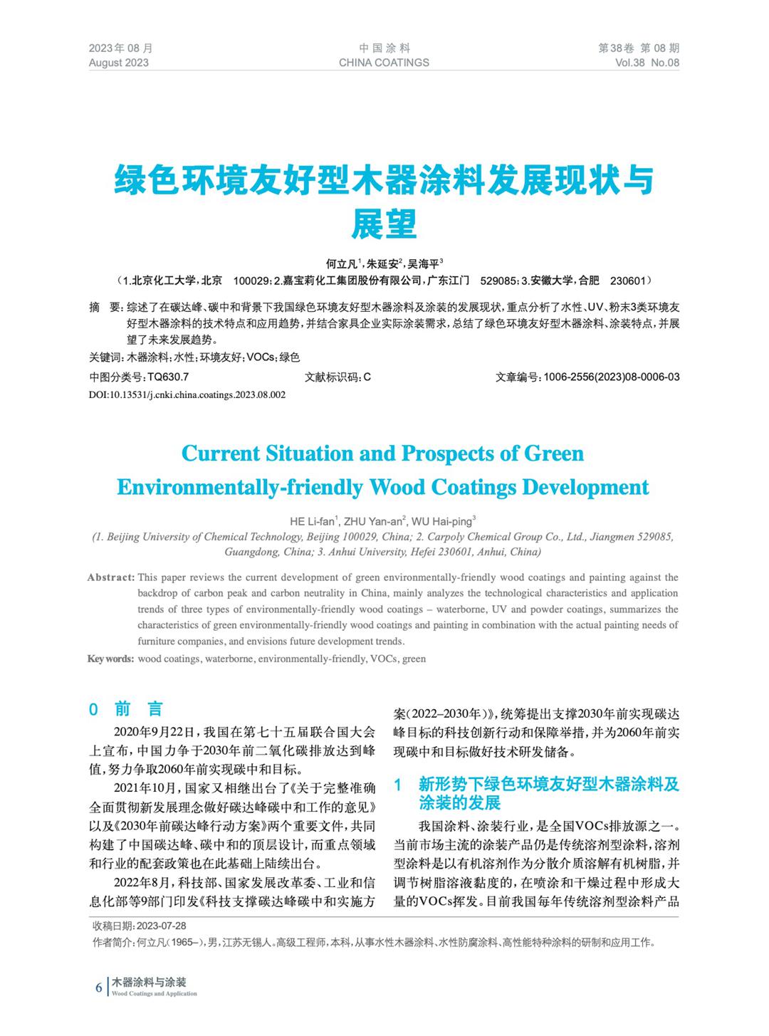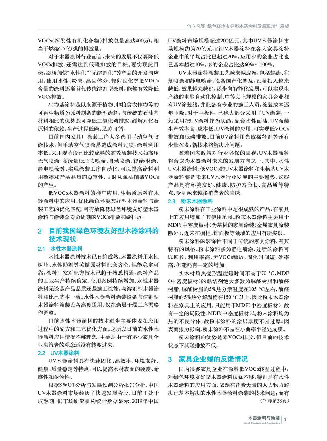 摘要:綜述了在碳達(dá)峰、碳中和背景下我國(guó)綠色環(huán)境友好型木器涂料及涂裝的發(fā)展現(xiàn)狀,重點(diǎn)分析了水性、UV、粉末3類(lèi)環(huán)境友好型木器涂料的技術(shù)特點(diǎn)和應(yīng)用趨勢(shì),并結(jié)合家具企業(yè)實(shí)際涂裝需求,總結(jié)了綠色環(huán)境友好型木器涂料、涂裝特點(diǎn),并展望了未來(lái)發(fā)展趨勢(shì)。