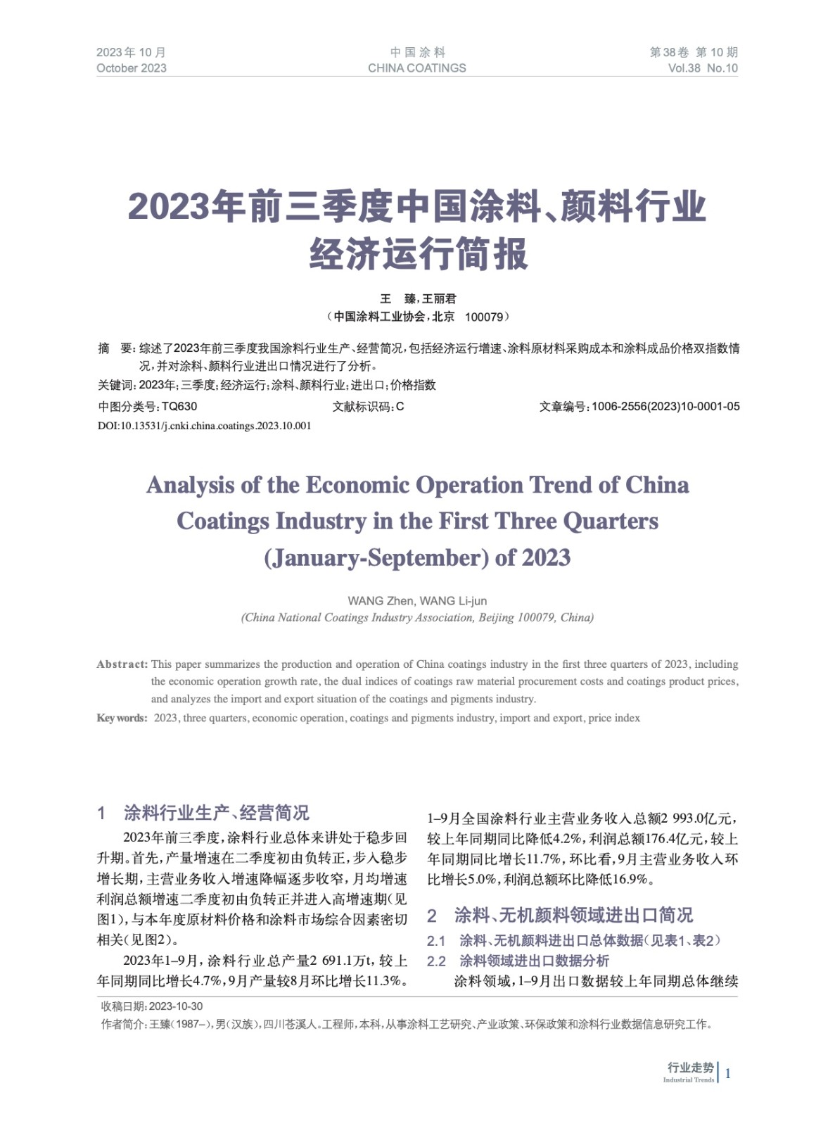 2023年前三季度中國涂料、顏料行業(yè)經(jīng)濟運行簡報