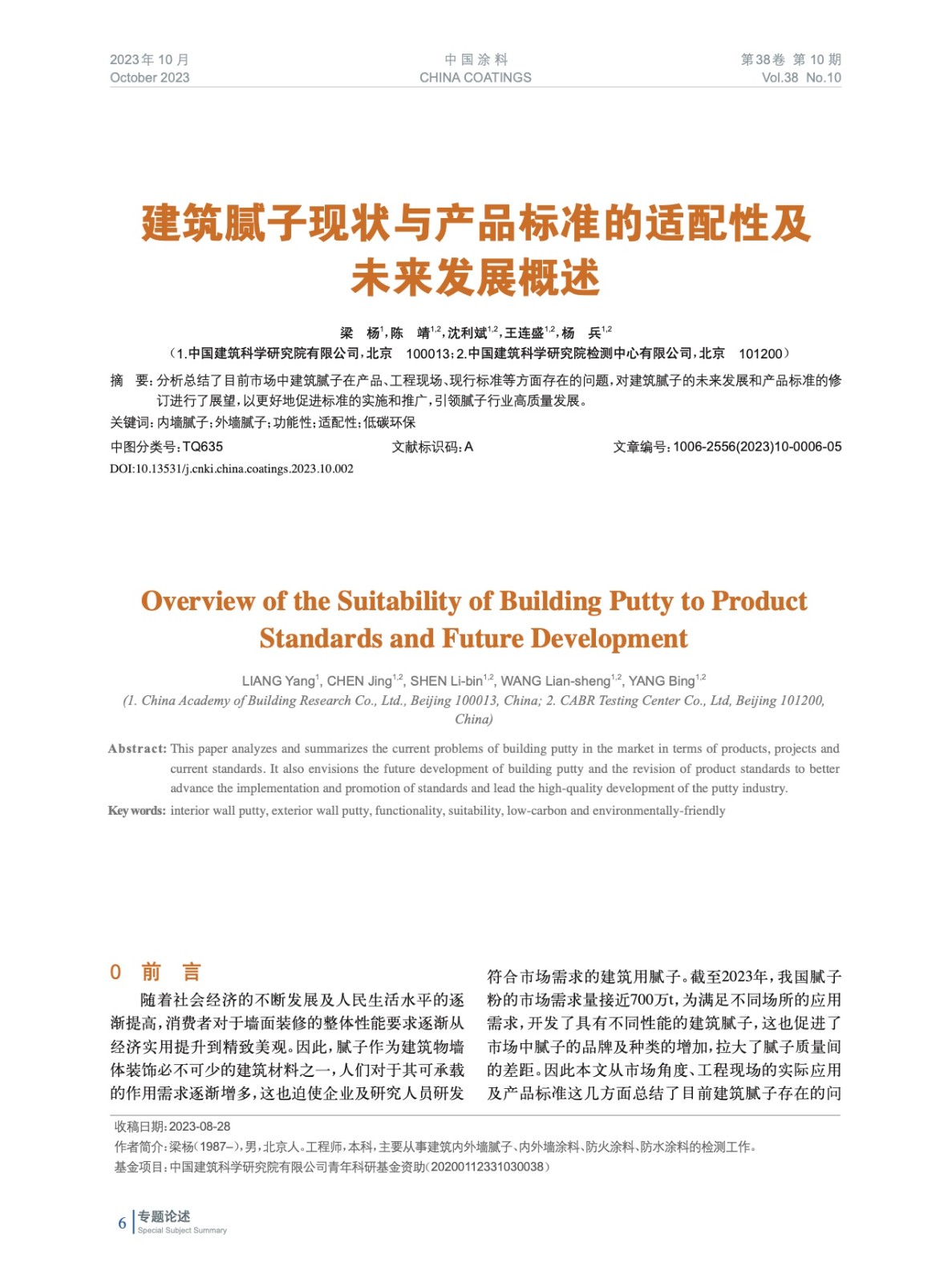 建筑膩子現(xiàn)狀與產(chǎn)品標準的適配性及未來發(fā)展概述