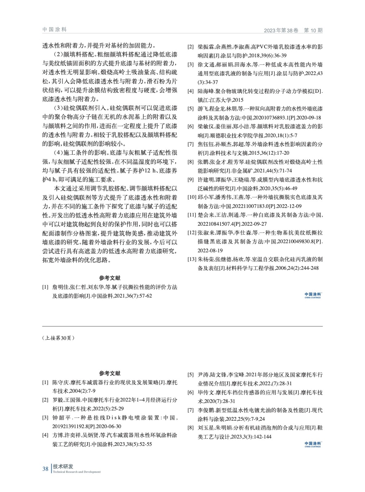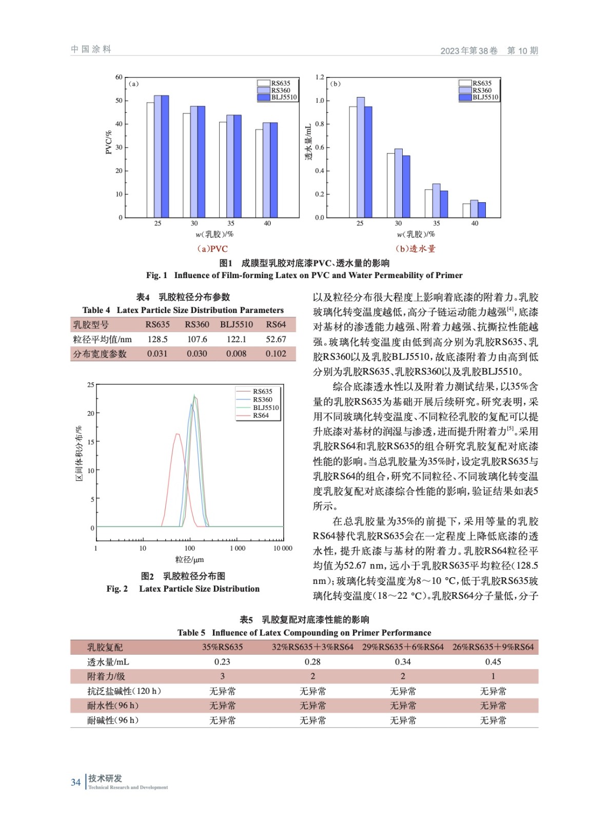 摘要:研究了乳膠搭配、顏填料搭配以及硅烷偶聯(lián)劑引入對底漆性能的影響,開發(fā)出低透水性高附著力外墻用底漆。結(jié)果表明:采用粒徑小、玻璃化轉(zhuǎn)變溫度低的乳膠復(fù)配粒徑大、玻璃化轉(zhuǎn)變溫度高的乳膠可以平衡底漆透水性和附著力,并提升其對基材的加固性能。采用粗細(xì)顏填料搭配可以降低底漆與美紋紙錨固面積,減弱美紋紙撕脫底漆風(fēng)險(xiǎn);滑石粉的引入可以提升涂膜致密程度與硬度,提升底漆透水性與附著力。開發(fā)出的低透水性高附著力外墻用底漆在不同溫濕度環(huán)境下,均與灰粗膩?zhàn)泳哂休^強(qiáng)的適配性。