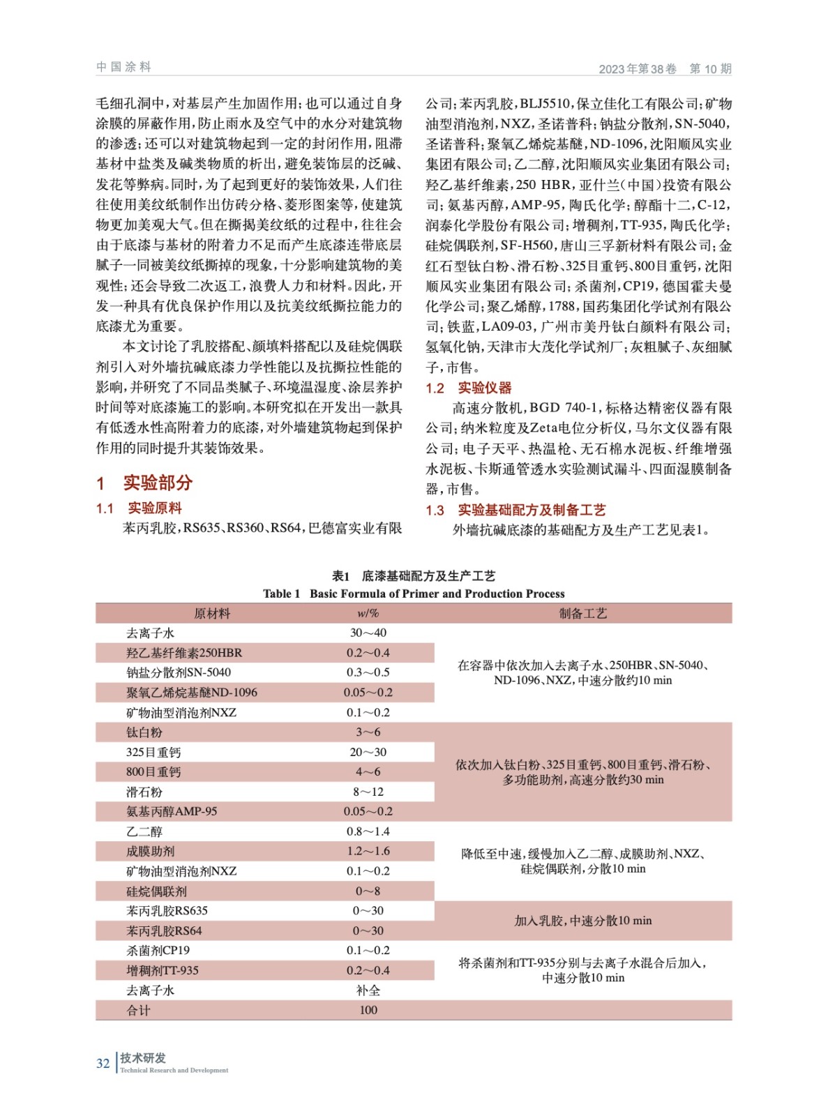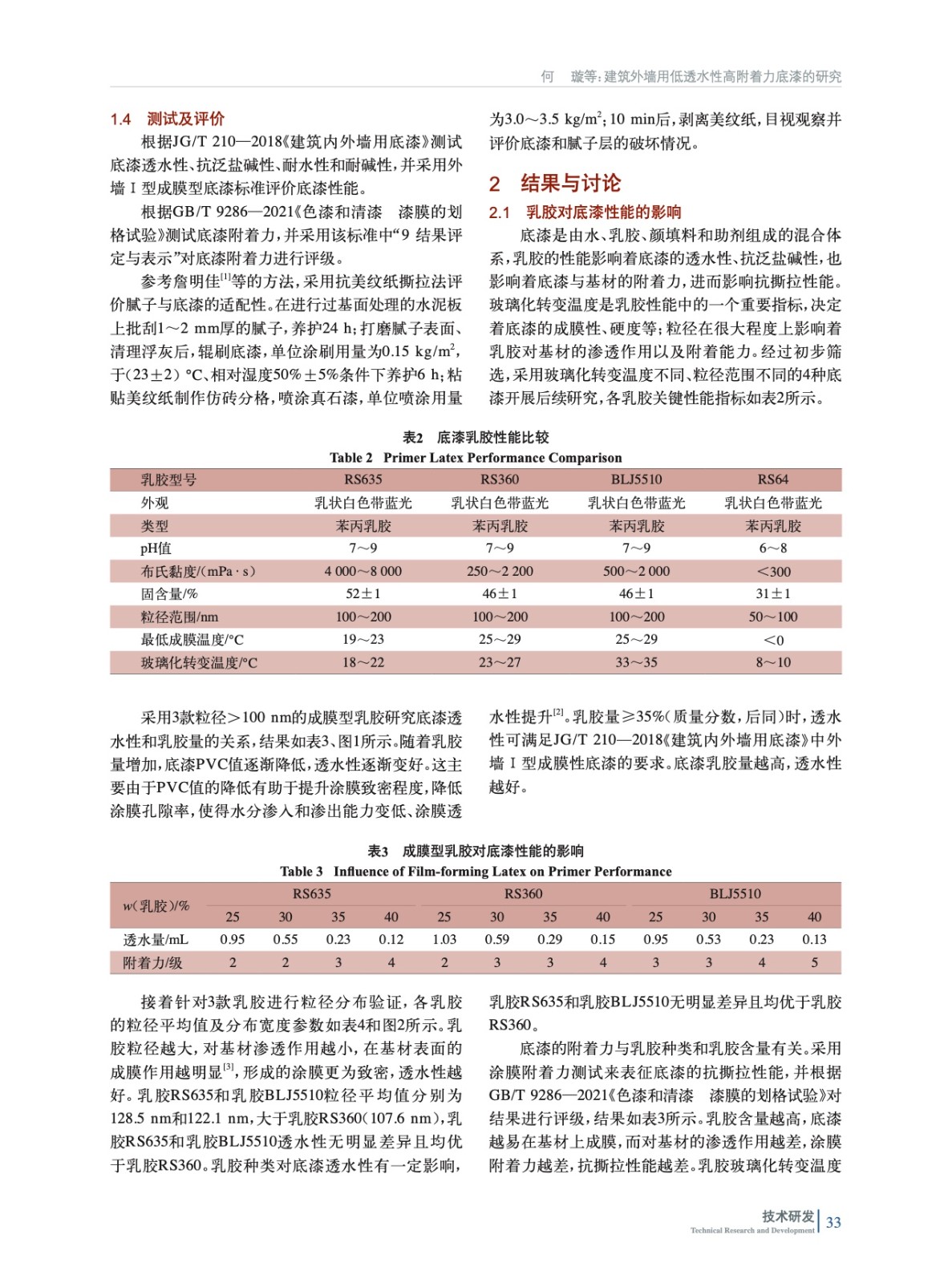 建筑外墻用低透水性高附著力底漆的研究