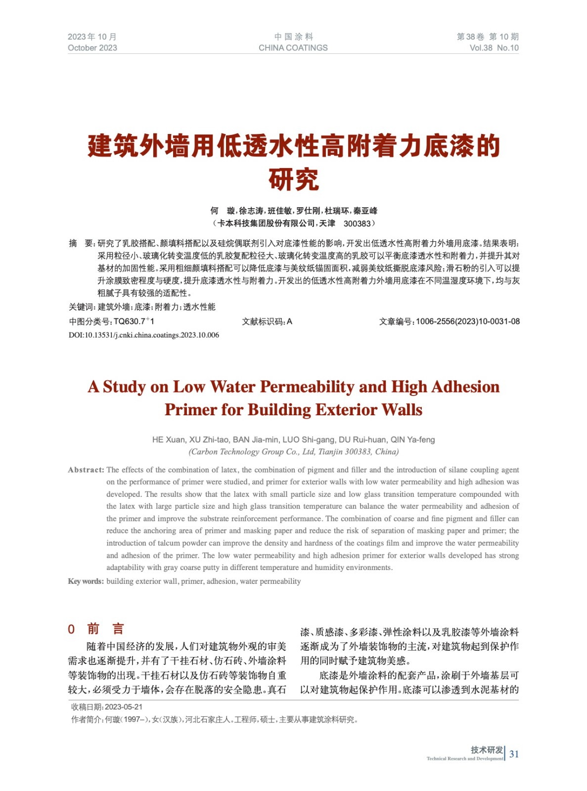 本文系作者@何 璇,徐志濤,班佳敏,羅仕剛,杜瑞環(huán),秦亞峰 授權(quán)中國涂料網(wǎng)發(fā)表,并經(jīng)中國涂料網(wǎng)編輯,未經(jīng)允許不得轉(zhuǎn)載,如需轉(zhuǎn)載請聯(lián)系chinacoatingnet@vip.163.com