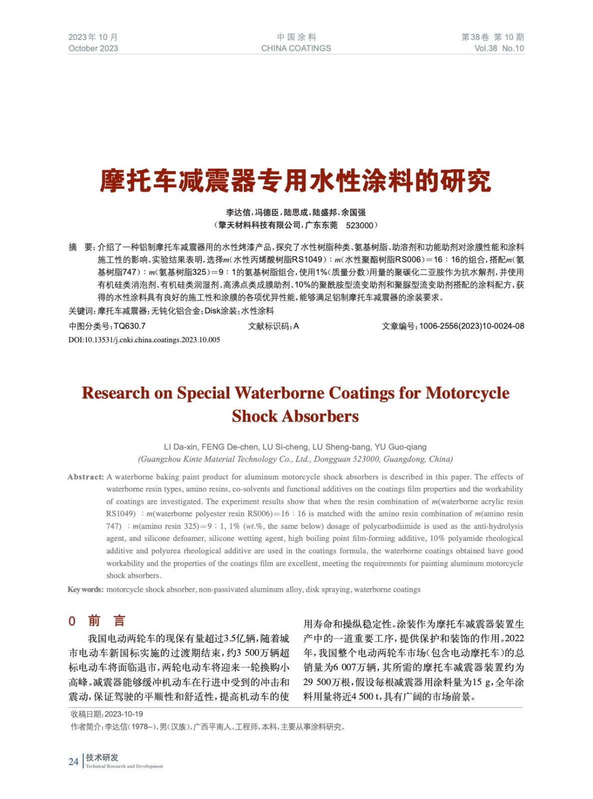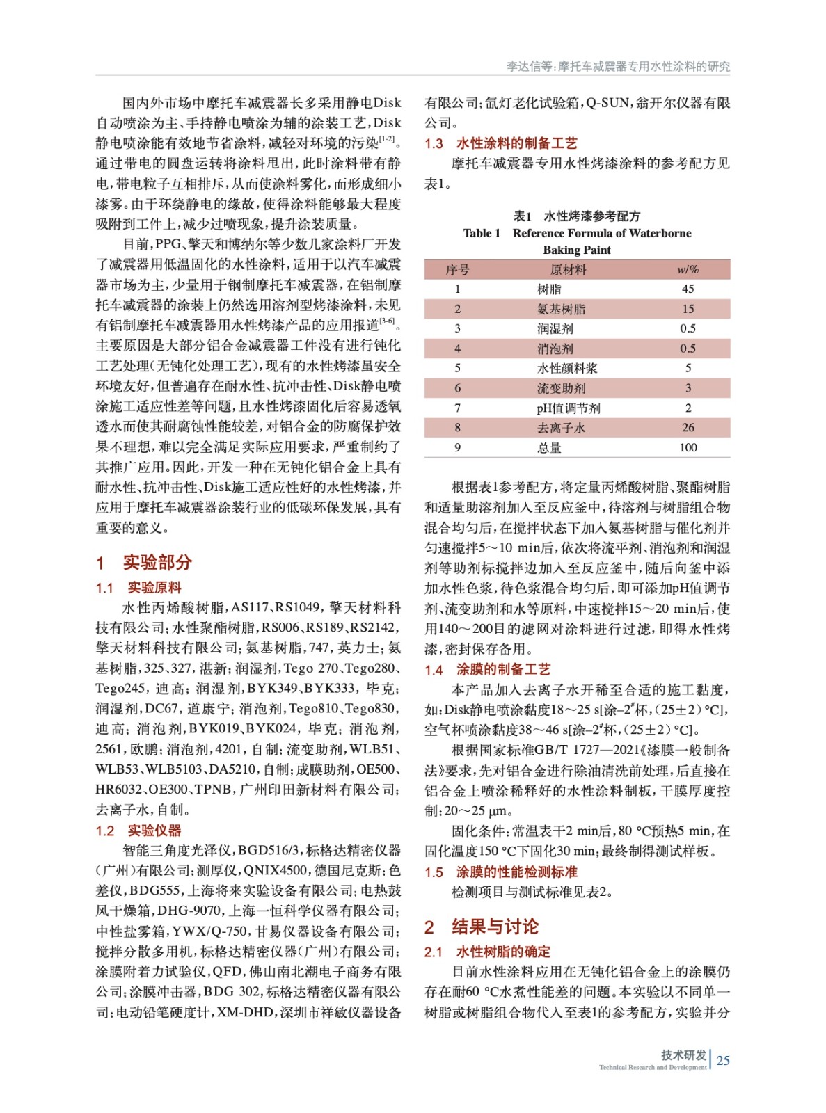 摩托車減震器專用水性涂料的研究