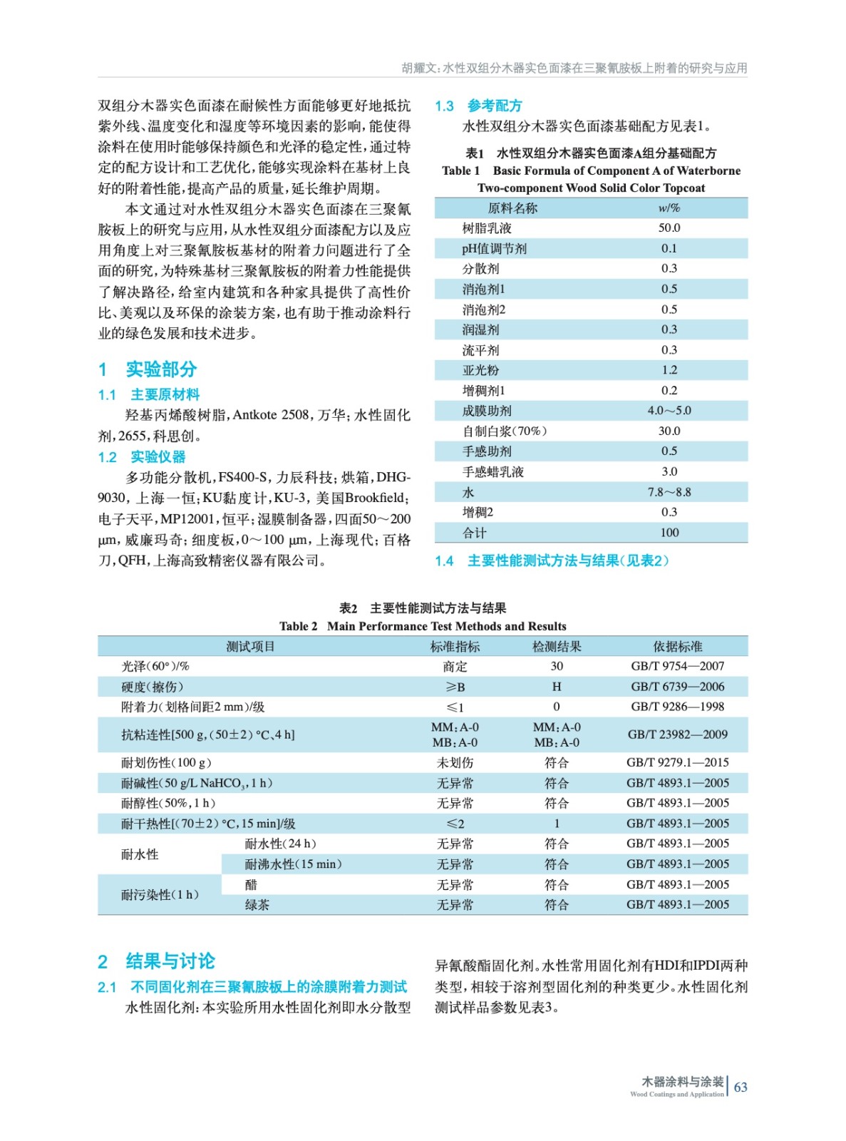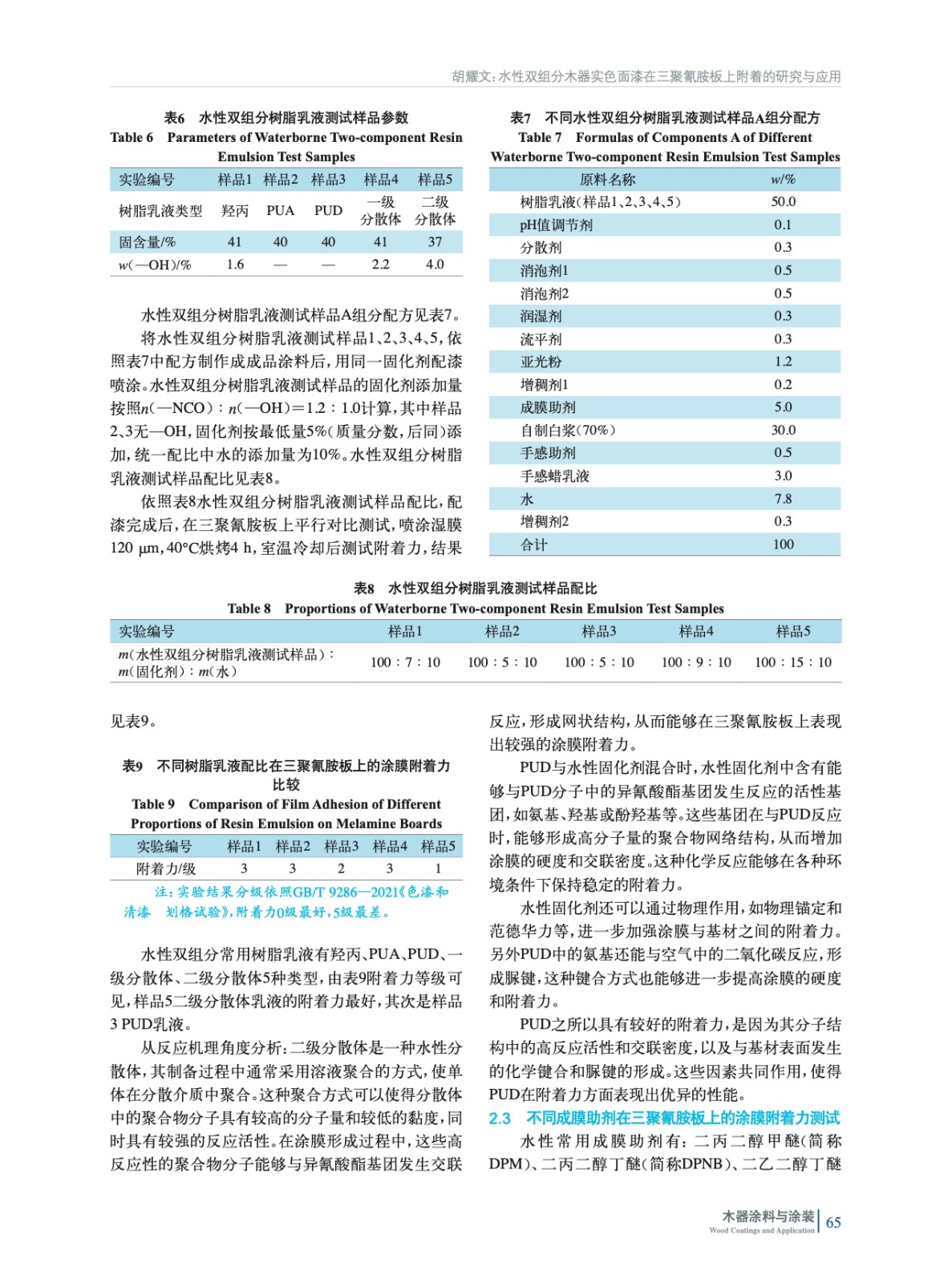 水性雙組分木器實色面漆在三聚氰胺板上附著的研究與應用