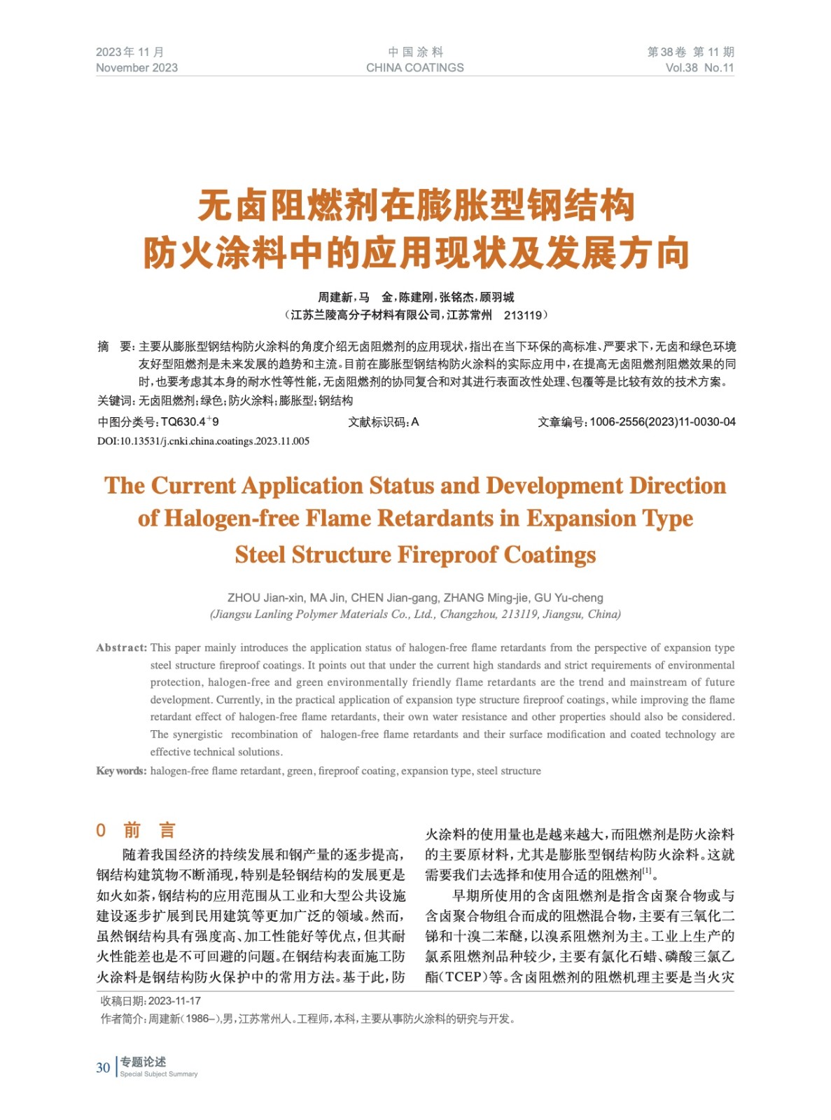 無鹵阻燃劑在膨脹型鋼結構防火涂料中的應用現狀及發展方向