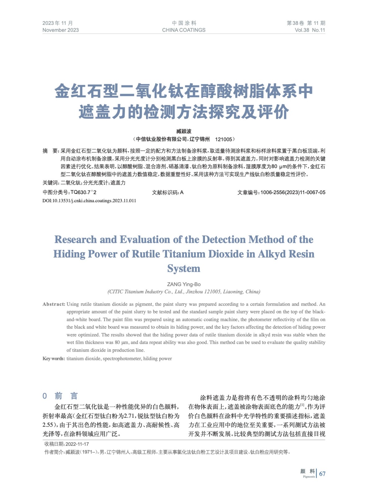 金紅石型二氧化鈦在醇酸樹脂體系中遮蓋力的檢測方法探究及評價