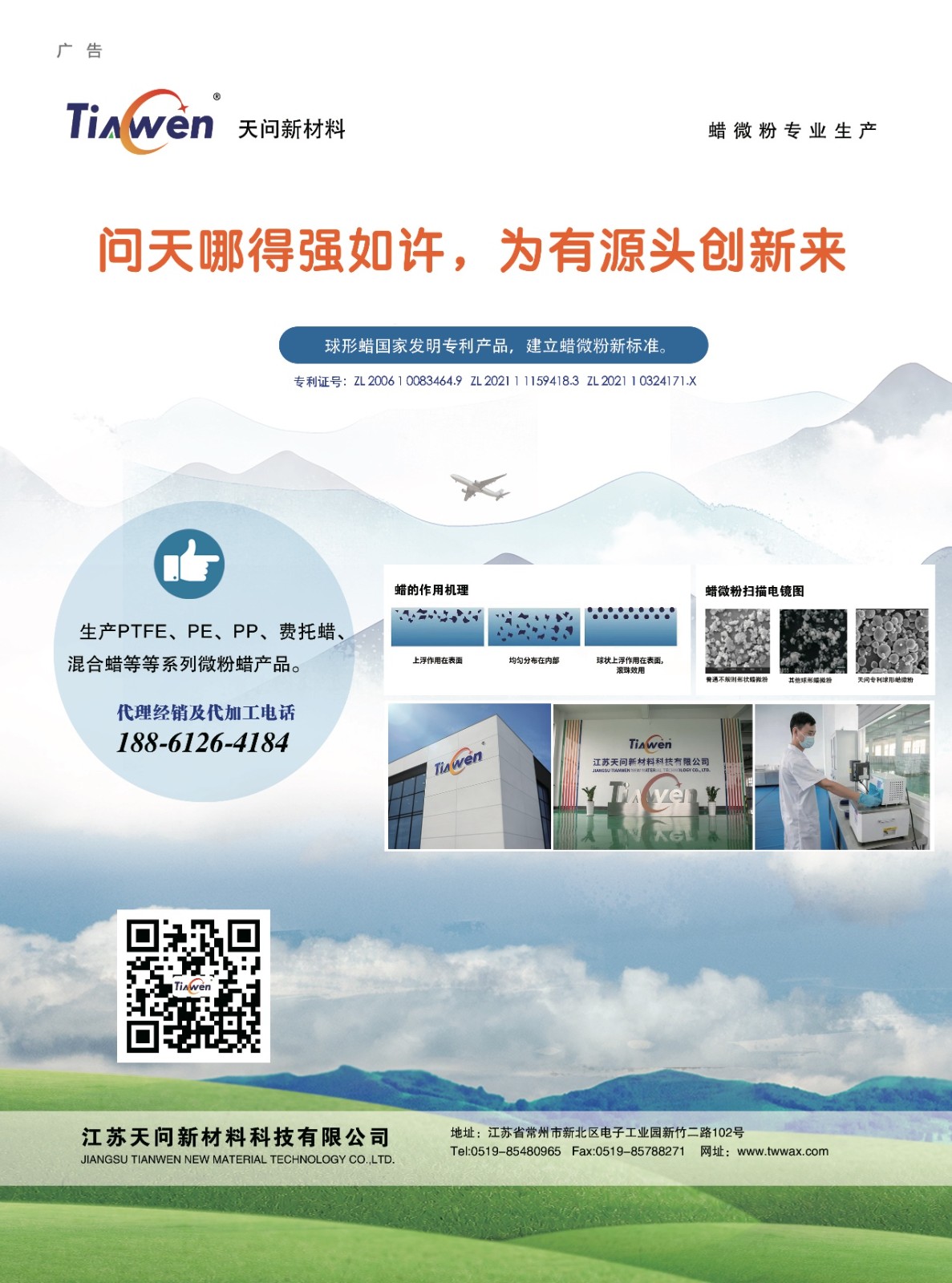 封1:江蘇布威倫環??萍加邢薰荆环?:贏創特種化學(上海)有限公司;封3:江蘇天問新材料科技有限公司;封4:德謙(上海)化學有限公司