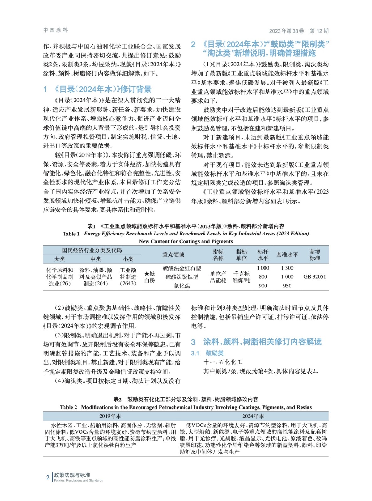 《產業結構調整指導目錄(2024年本)》涂料、顏料、樹脂相關更新內容解讀