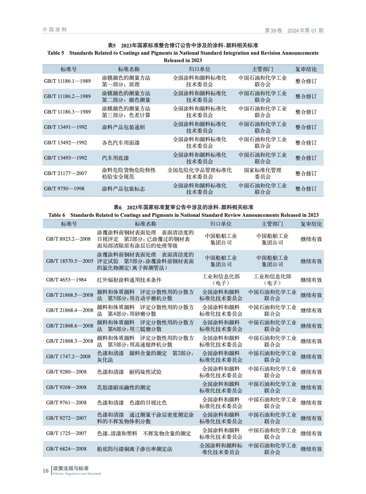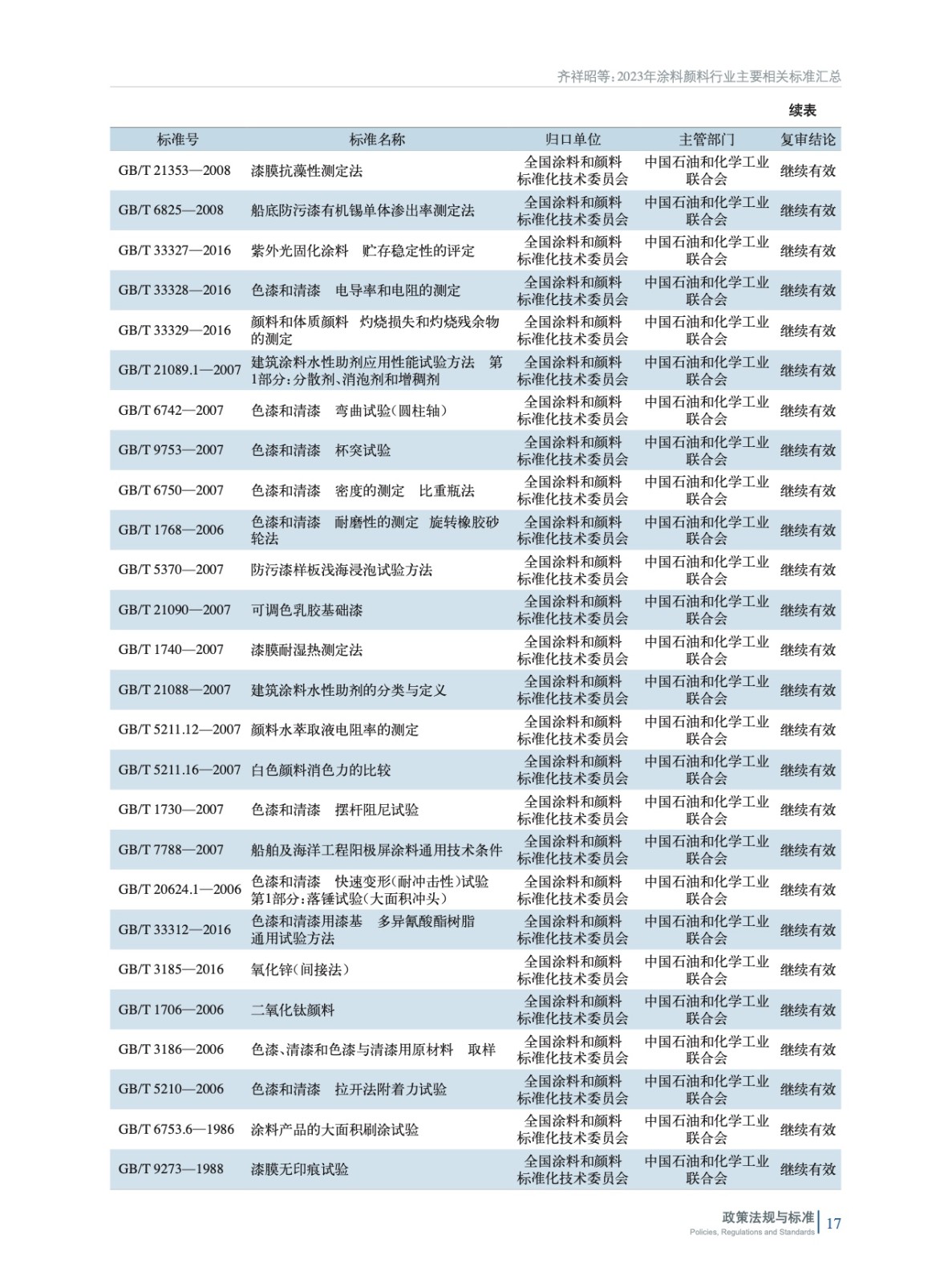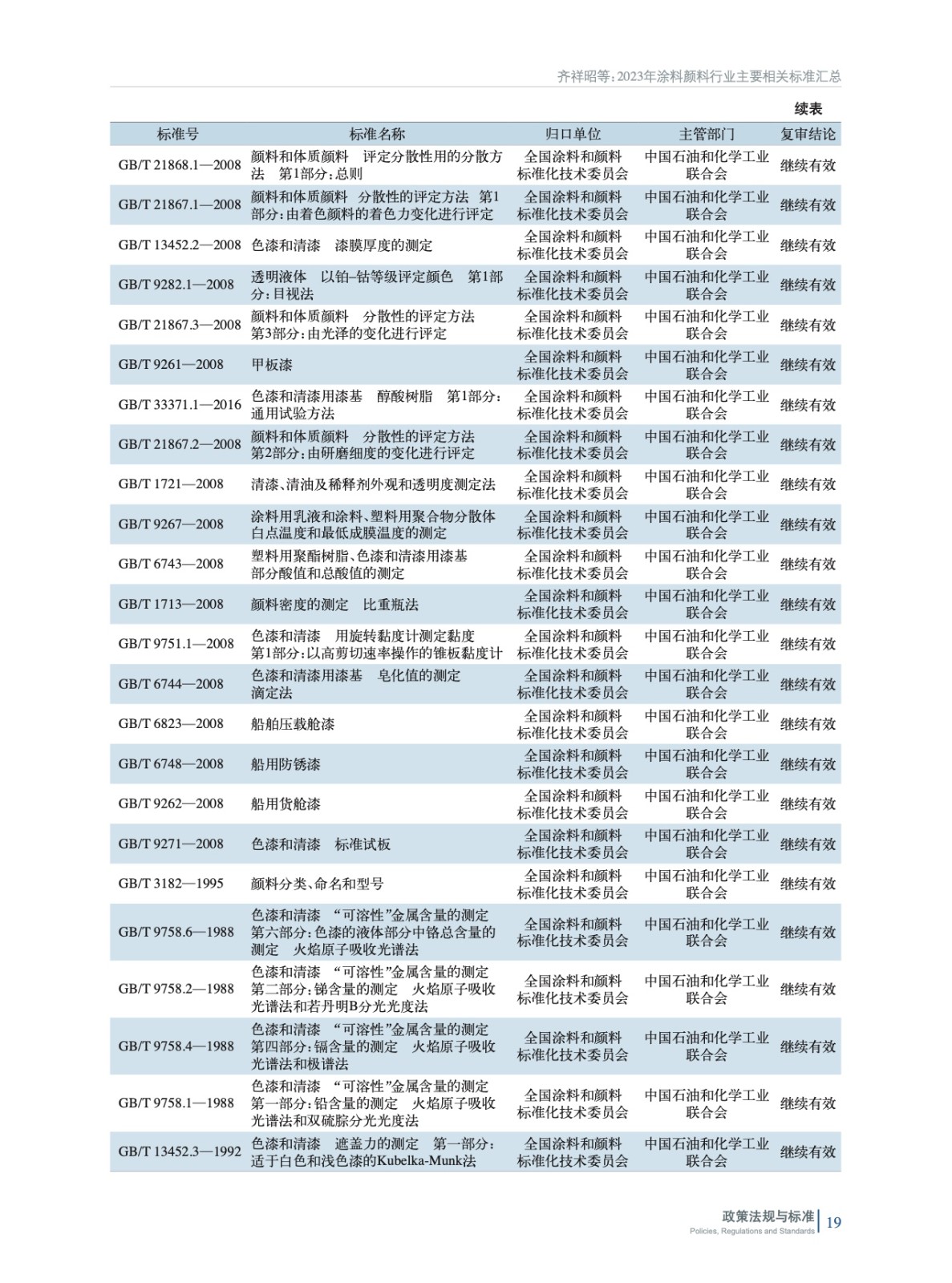 2023年涂料顏料行業(yè)主要相關(guān)標準匯總