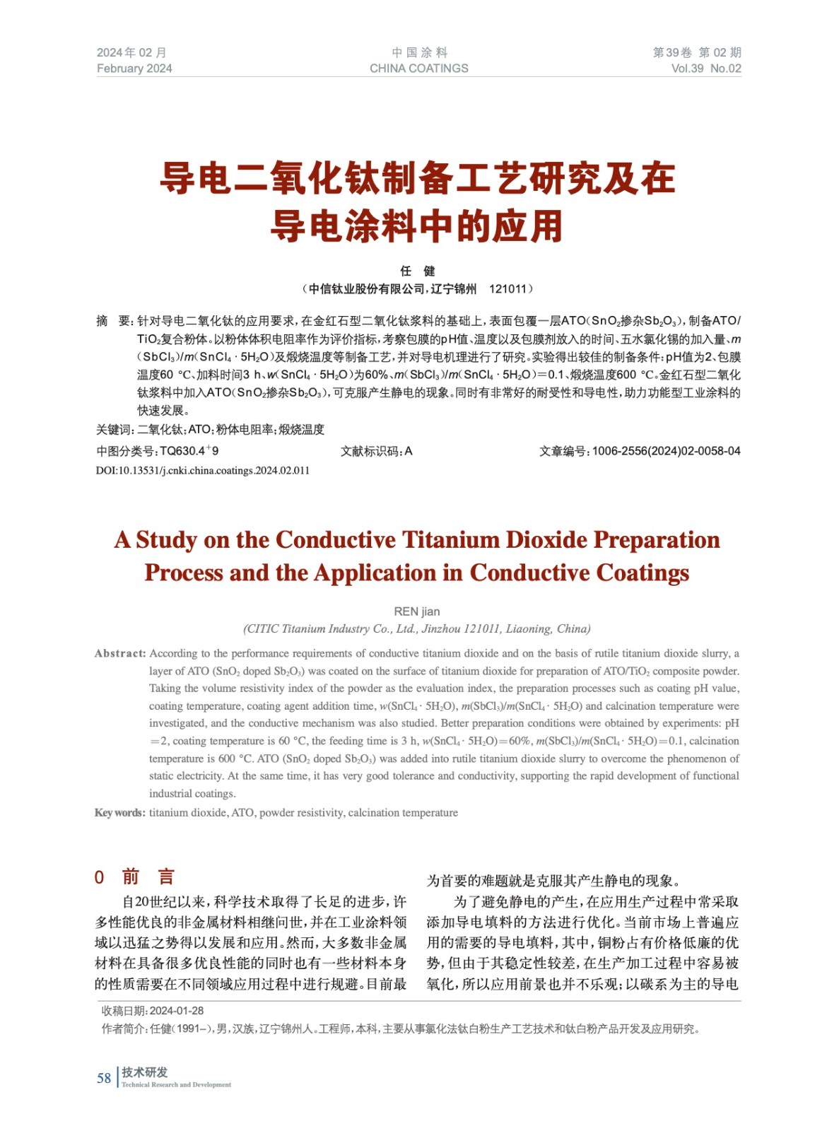 導(dǎo)電二氧化鈦制備工藝研究及在導(dǎo)電涂料中的應(yīng)用