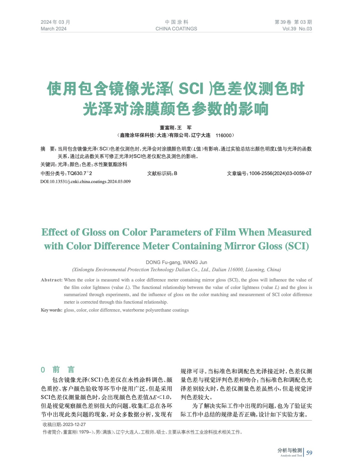 使用包含鏡像光澤(SCI)色差儀測色時光澤對涂膜顏色參數(shù)的影響