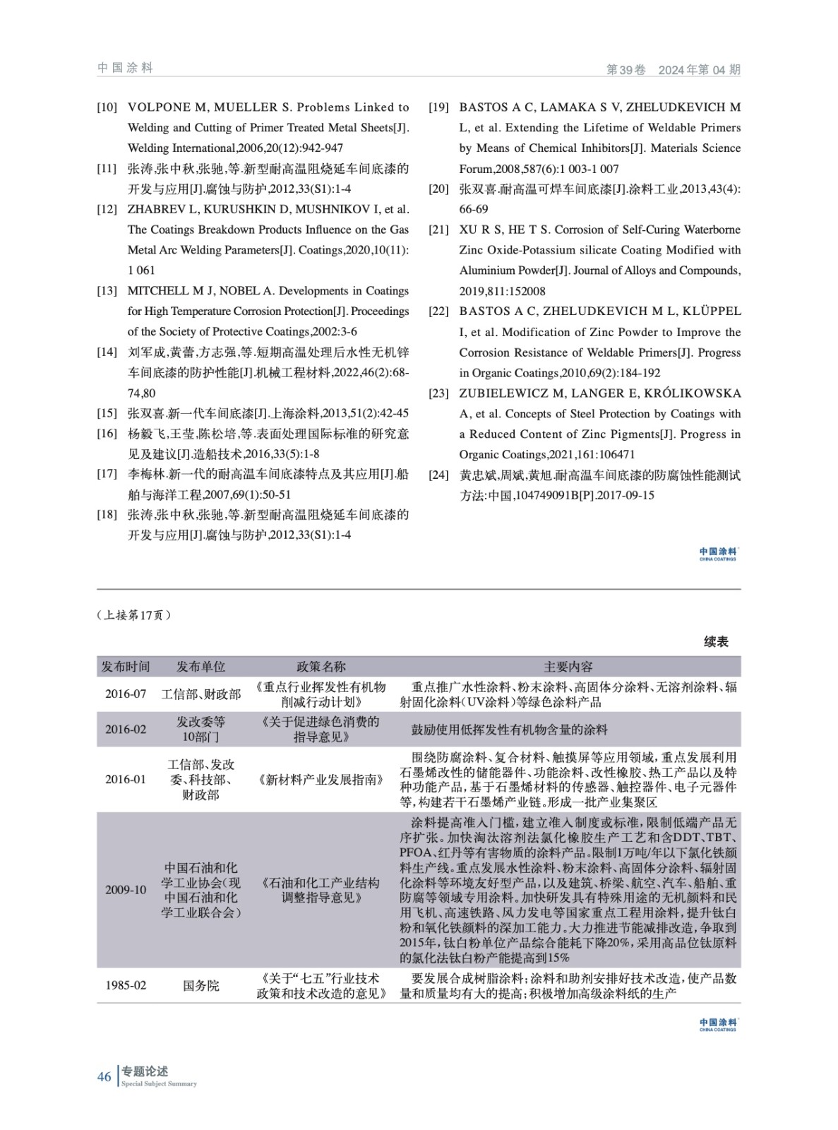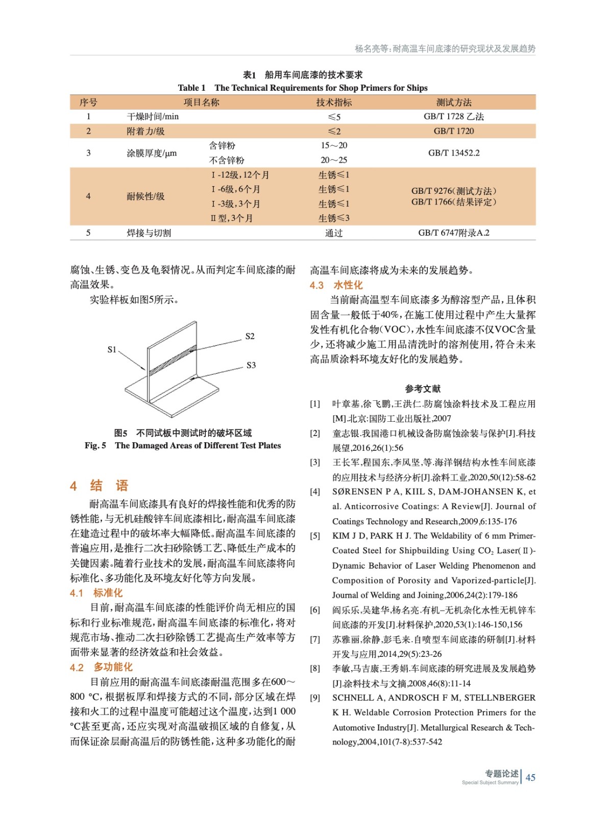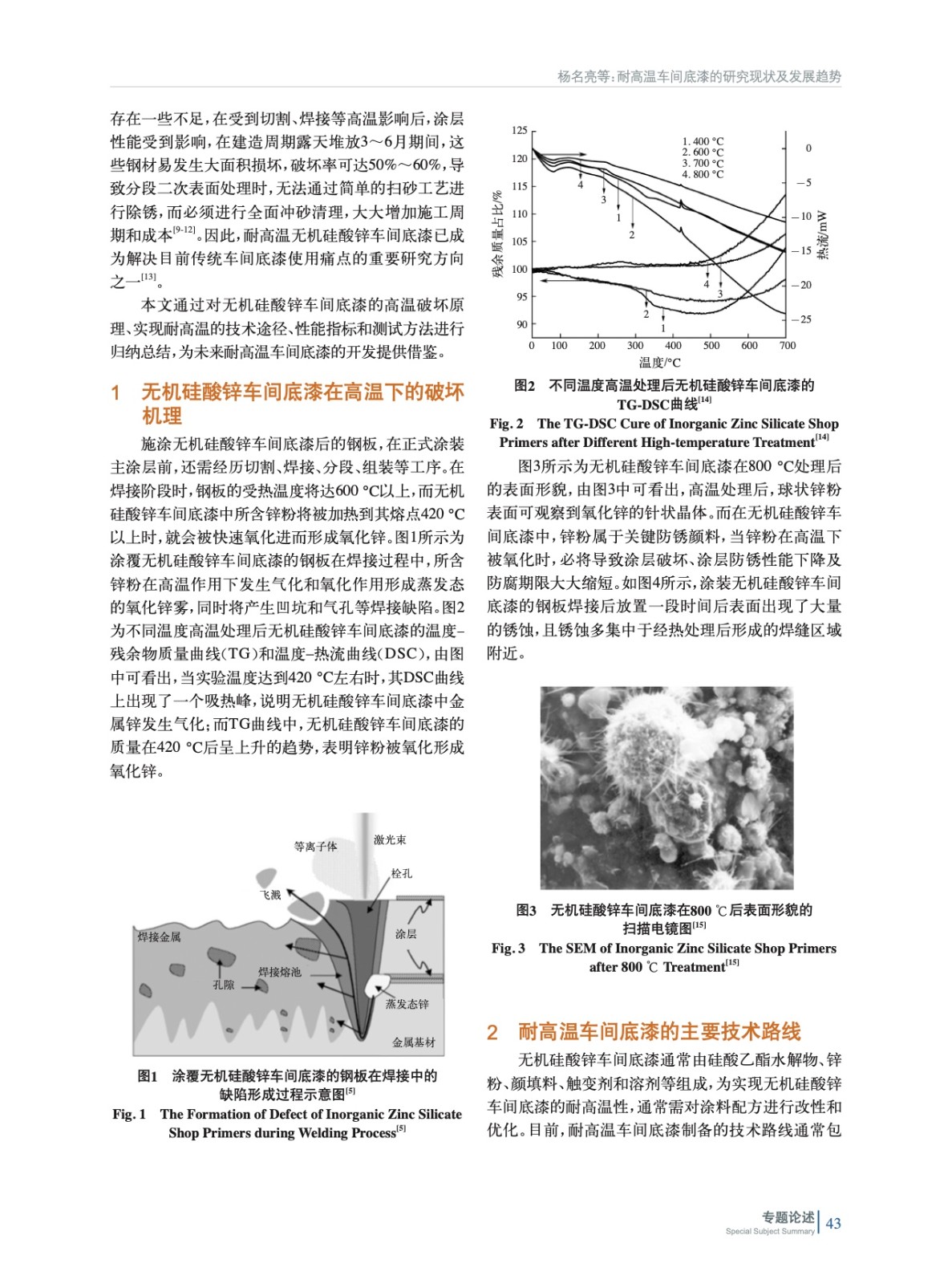 綜述了無機硅酸鋅車間底漆的高溫破壞原理、實現耐高溫車間底漆的主要技術途徑、性能指標和測試方法,并對耐高溫車間底漆未來的發展方向做出了展望。
