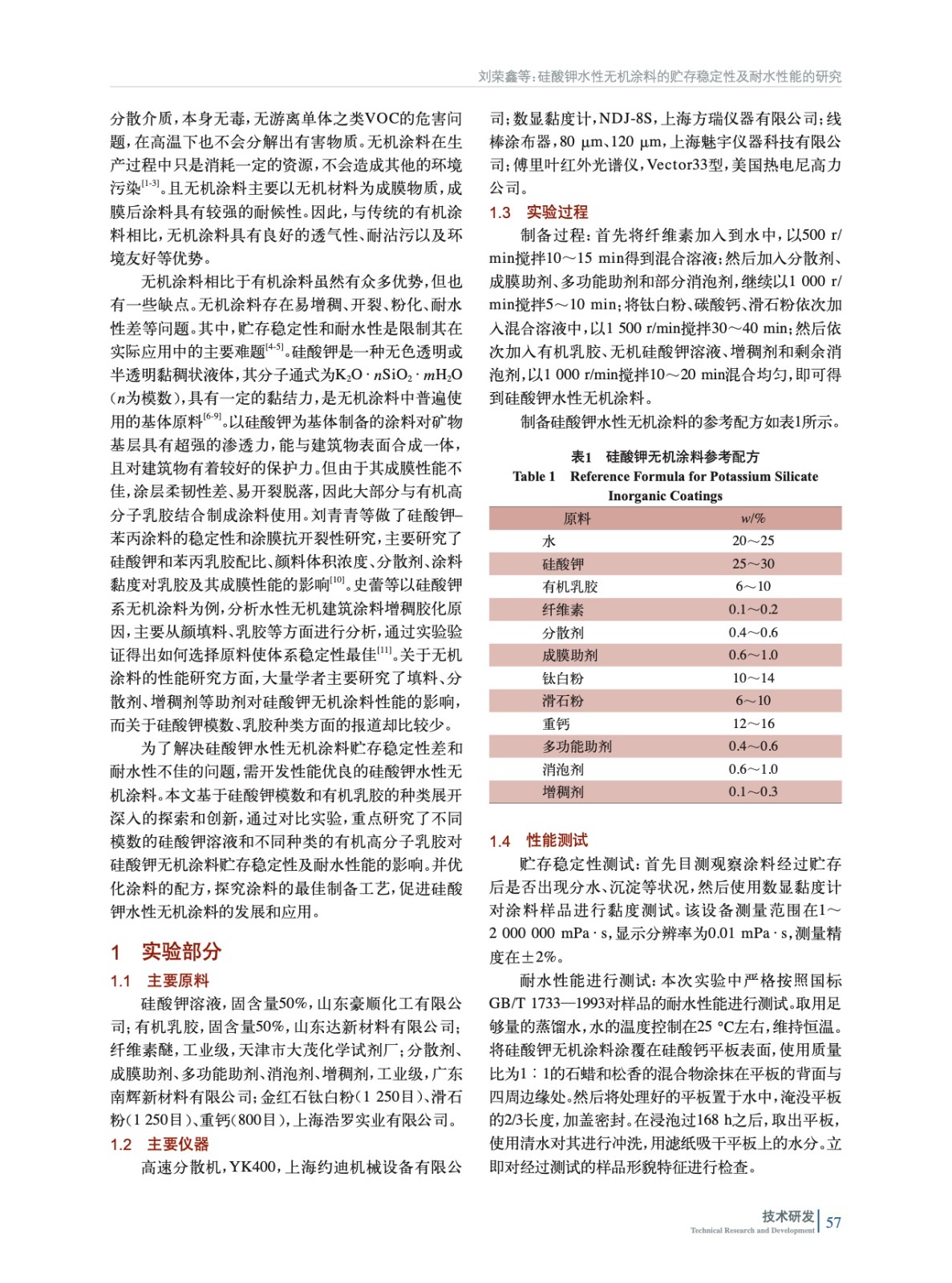 硅酸鉀水性無(wú)機(jī)涂料的貯存穩(wěn)定性及耐水性能的研究