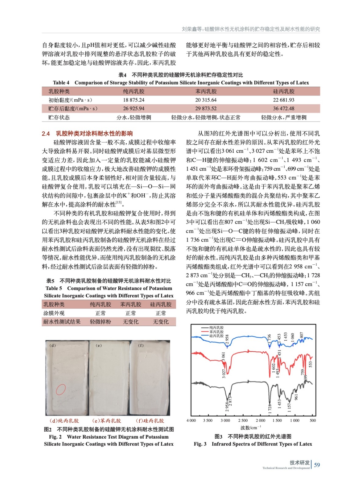 摘要:主要研究了不同模數(shù)的硅酸鉀和不同種類的有機(jī)乳膠對(duì)涂料貯存穩(wěn)定性和耐水性能的影響。通過對(duì)比實(shí)驗(yàn)制備了涂料樣品,并對(duì)涂料的黏度、耐水性、貯存穩(wěn)定性等進(jìn)行了表征。實(shí)驗(yàn)結(jié)果表明:硅酸鉀模數(shù)為3.5的無(wú)機(jī)涂料貯存穩(wěn)定性最好,硅酸鉀模數(shù)在3.5~3.9的耐水性能較為優(yōu)異;對(duì)比了純丙乳膠、苯丙乳膠和硅丙乳膠對(duì)涂料性能的影響,結(jié)果發(fā)現(xiàn)使用苯丙乳膠的硅酸鉀水性無(wú)機(jī)涂料貯存穩(wěn)定性最好,且苯丙乳膠和硅丙乳膠的耐水性能均優(yōu)于純丙乳膠。本實(shí)驗(yàn)使用3.5模數(shù)硅酸鉀和苯丙乳膠所制備的硅酸鉀水性無(wú)機(jī)涂料性能滿足TCSTM 00632.3—2022《建筑涂飾工程用涂料產(chǎn)品技術(shù)要求 第3部分:無(wú)機(jī)建筑涂料體系》的標(biāo)準(zhǔn)要求。