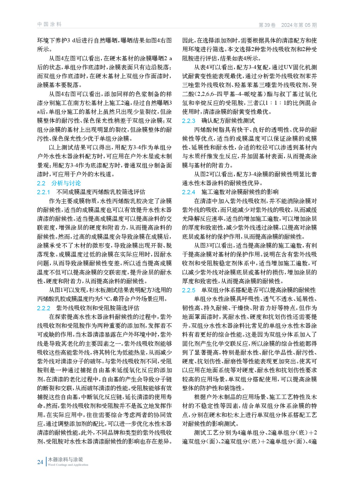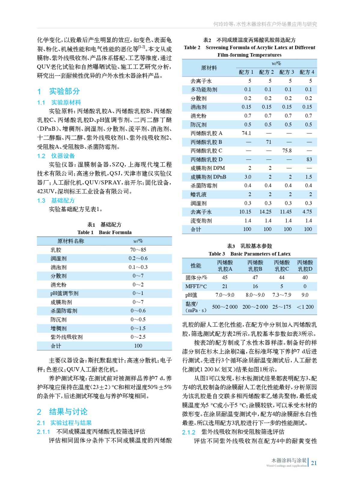 從成膜物、紫外線吸收劑、產品體系搭配、工藝等維度,通過QUV老化試驗和自然曝曬試驗、施工工藝研究分析,研究出一套耐候性優異的戶外水性木器涂料產品并對影響因素進行探討。