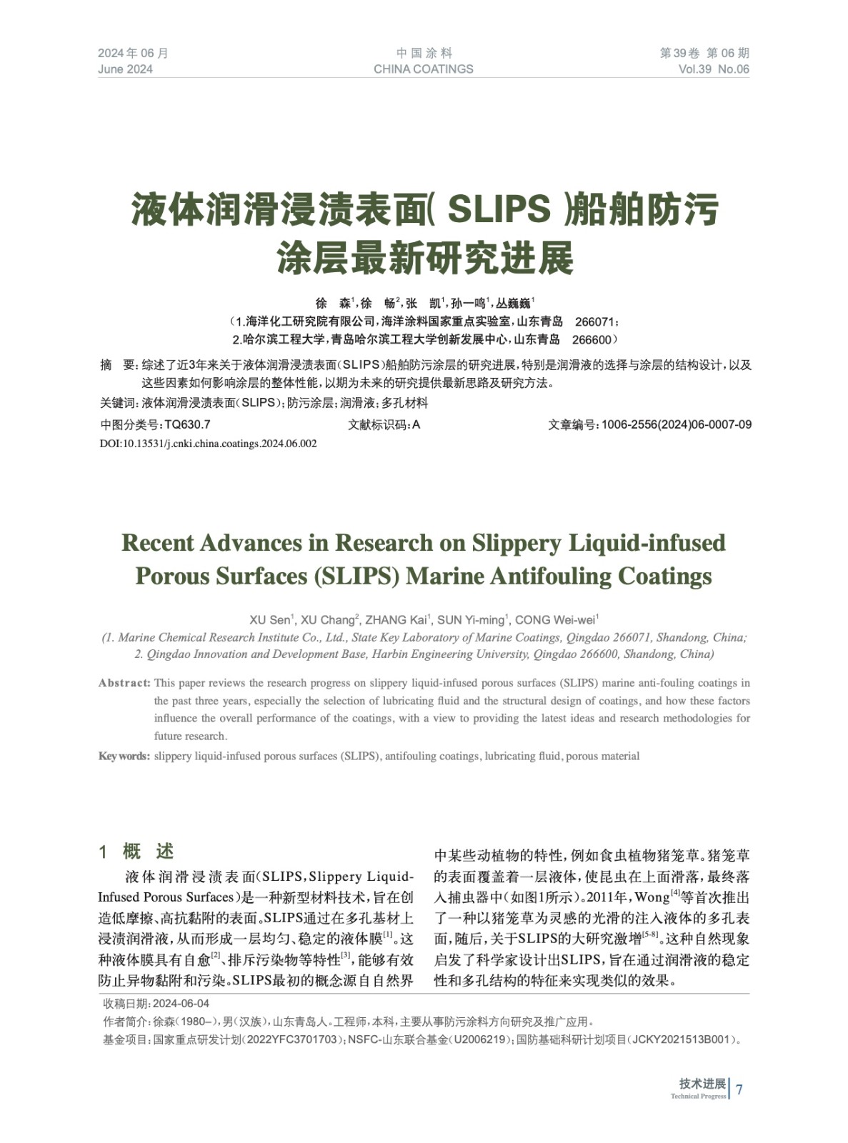綜述了近3年來關于液體潤滑浸漬表面(SLIPS)船舶防污涂層的研究進展,特別是潤滑液的選擇與涂層的結構設計,以及這些因素如何影響涂層的整體性能,以期為未來的研究提供最新思路及研究方法。