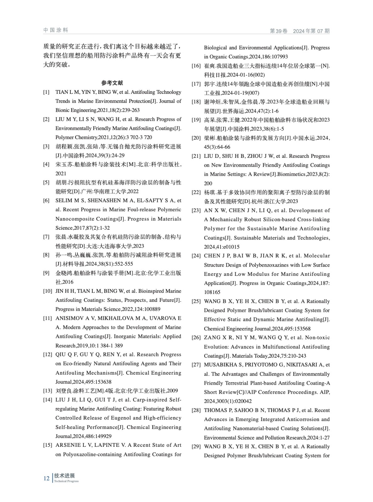 綜述了近年來船用防污涂料發展現狀,簡要討論了船用防污涂料技術分類與防污機理,并對船用防污涂料常用防污性能測試方法進行了總結分析。最后,對船用防污涂料的發展方向進行了展望。