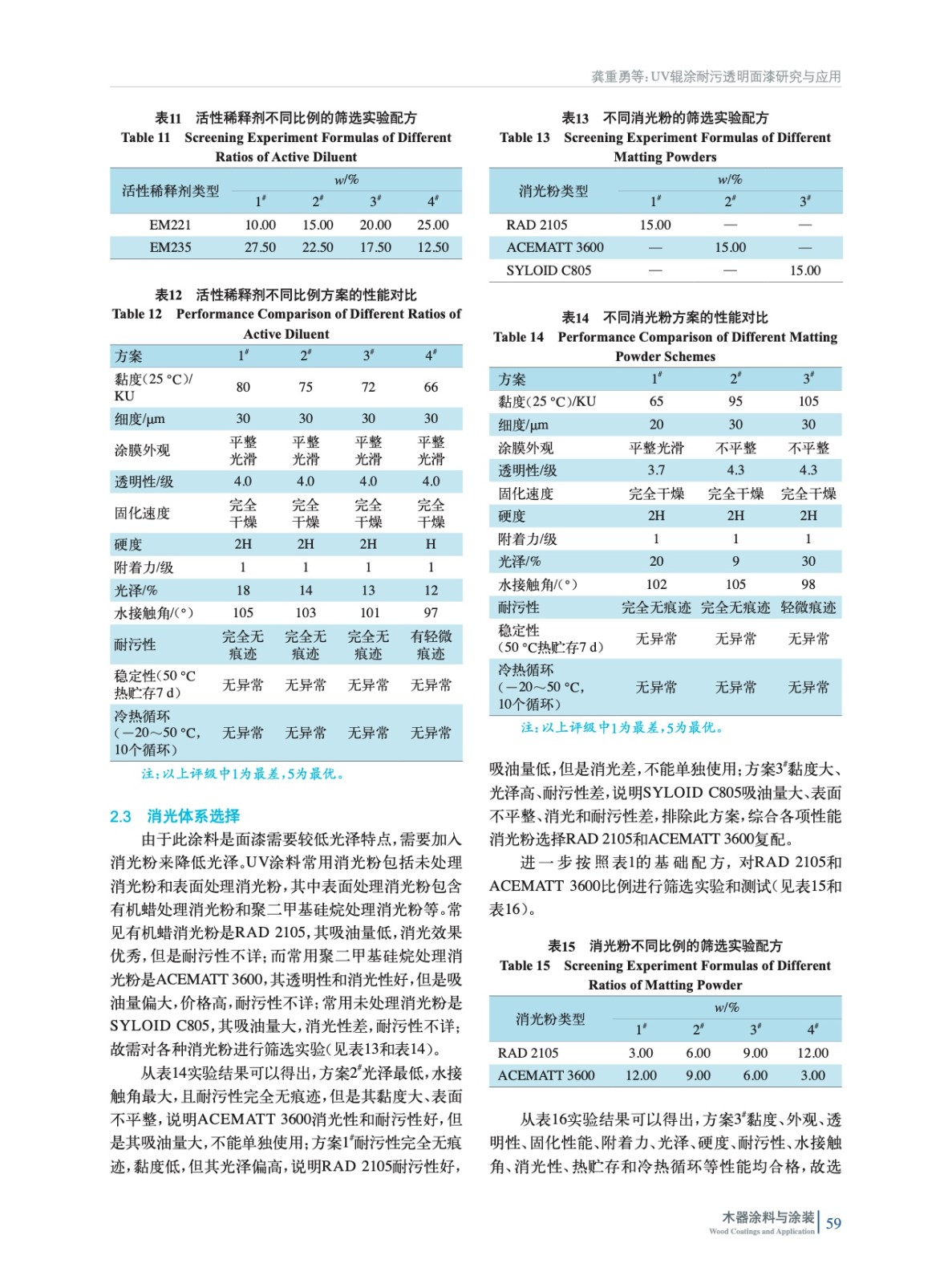 對UV輥涂耐污透明面漆,從UV樹脂、活性稀釋劑、消光粉和流平劑選擇等方面進行探討,通過實驗論證以及輥涂設備應用測試,驗證了其在工業(yè)化應用上的可行性。