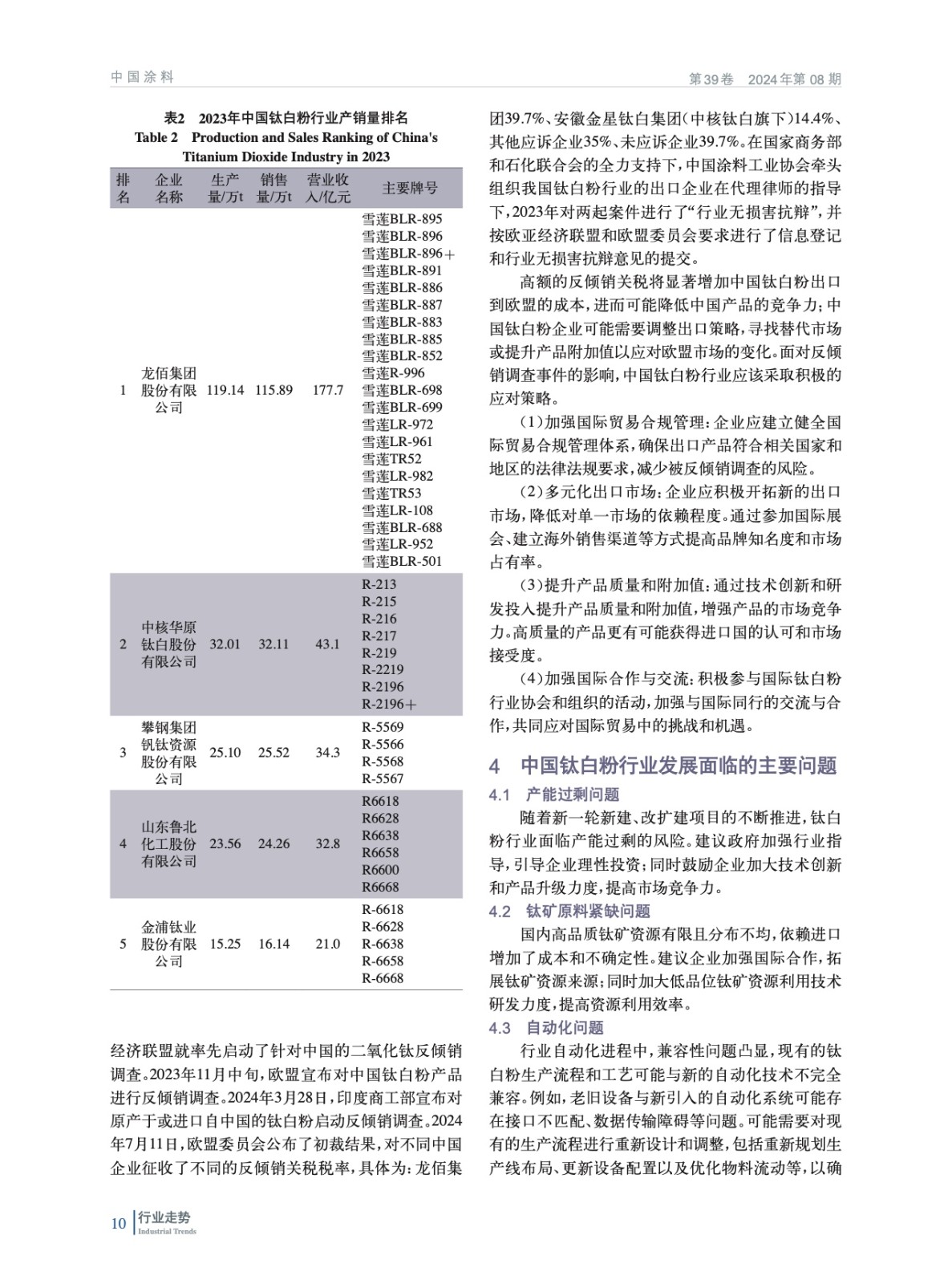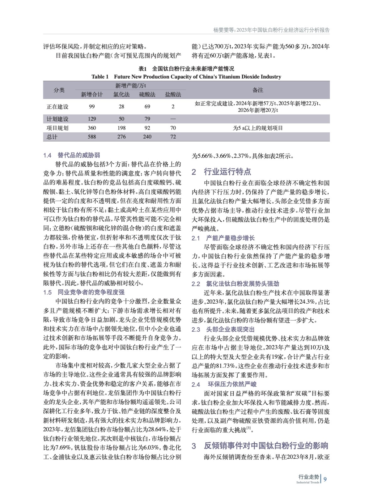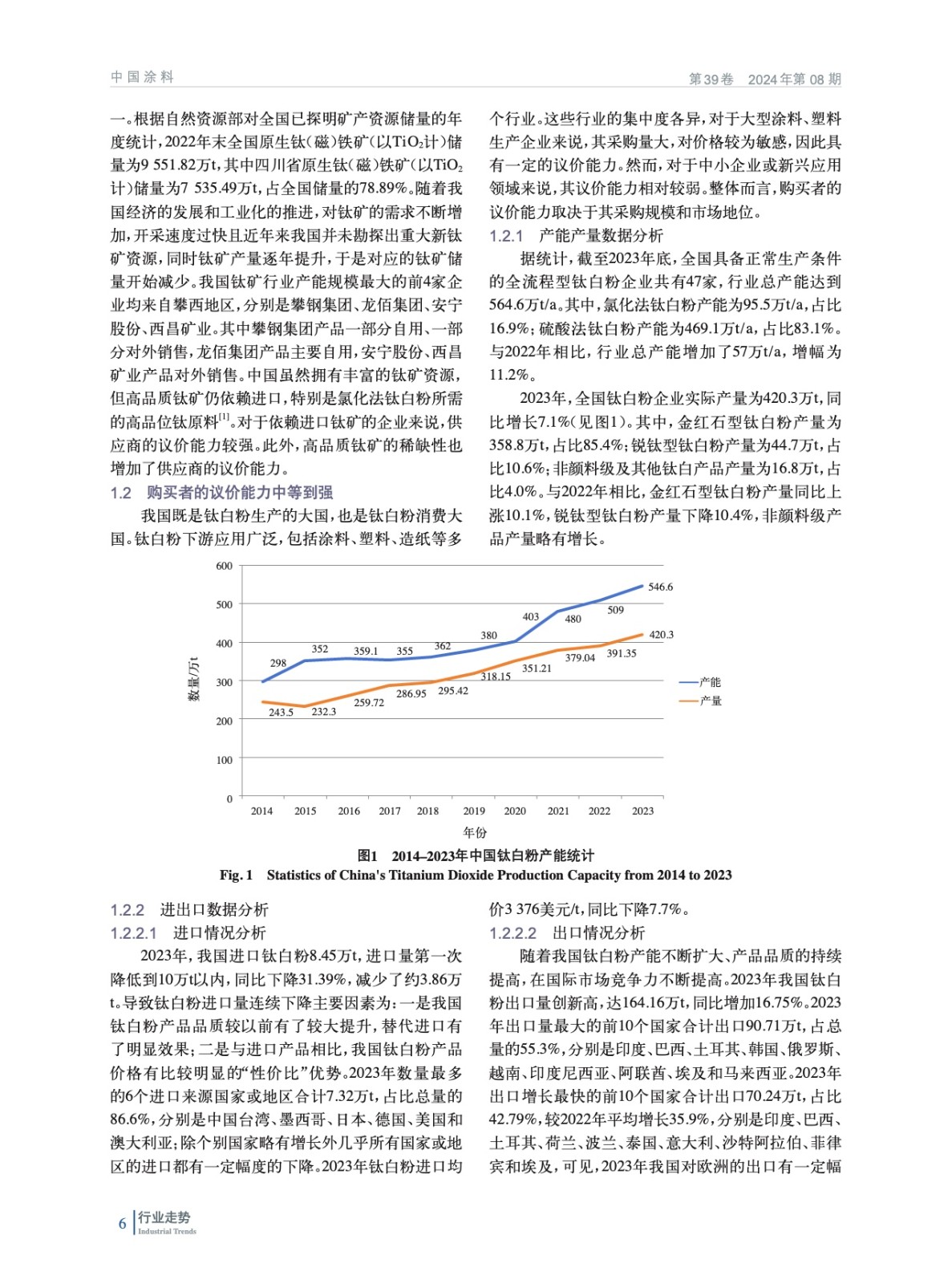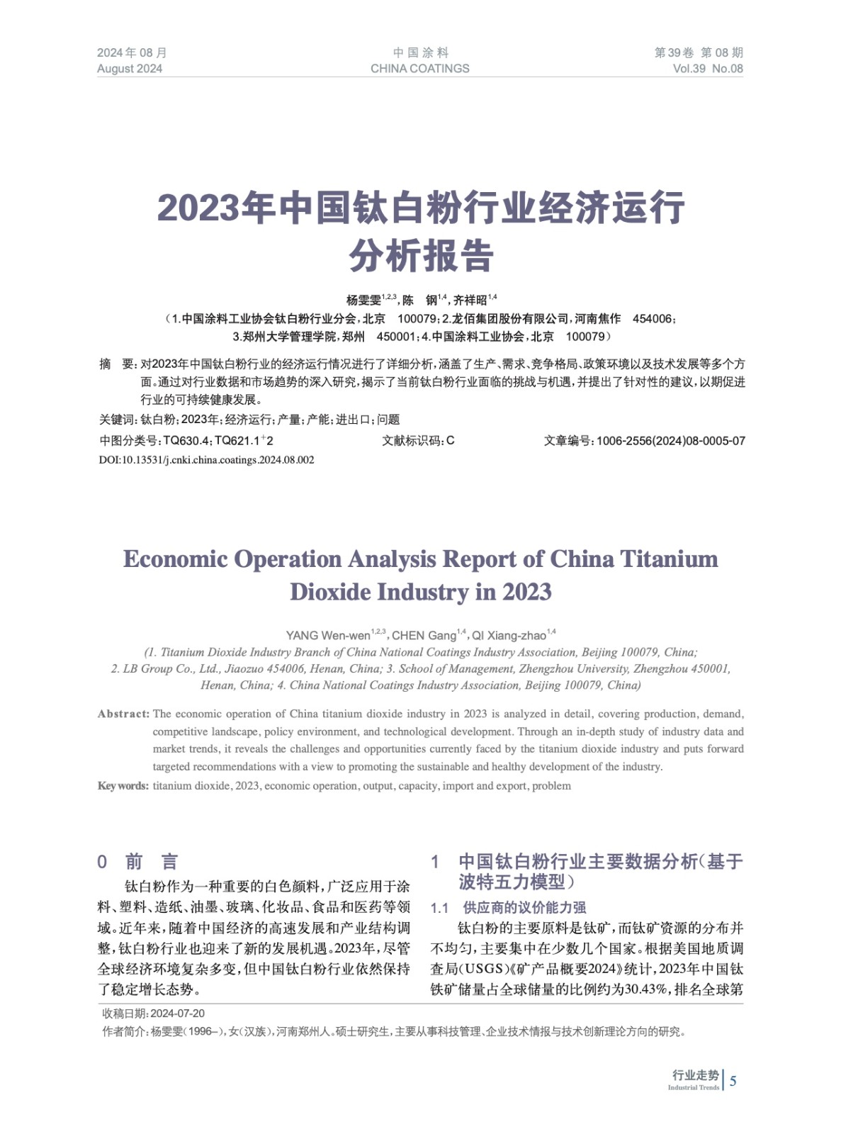 2023年中國鈦白粉行業(yè)經(jīng)濟運行分析報告