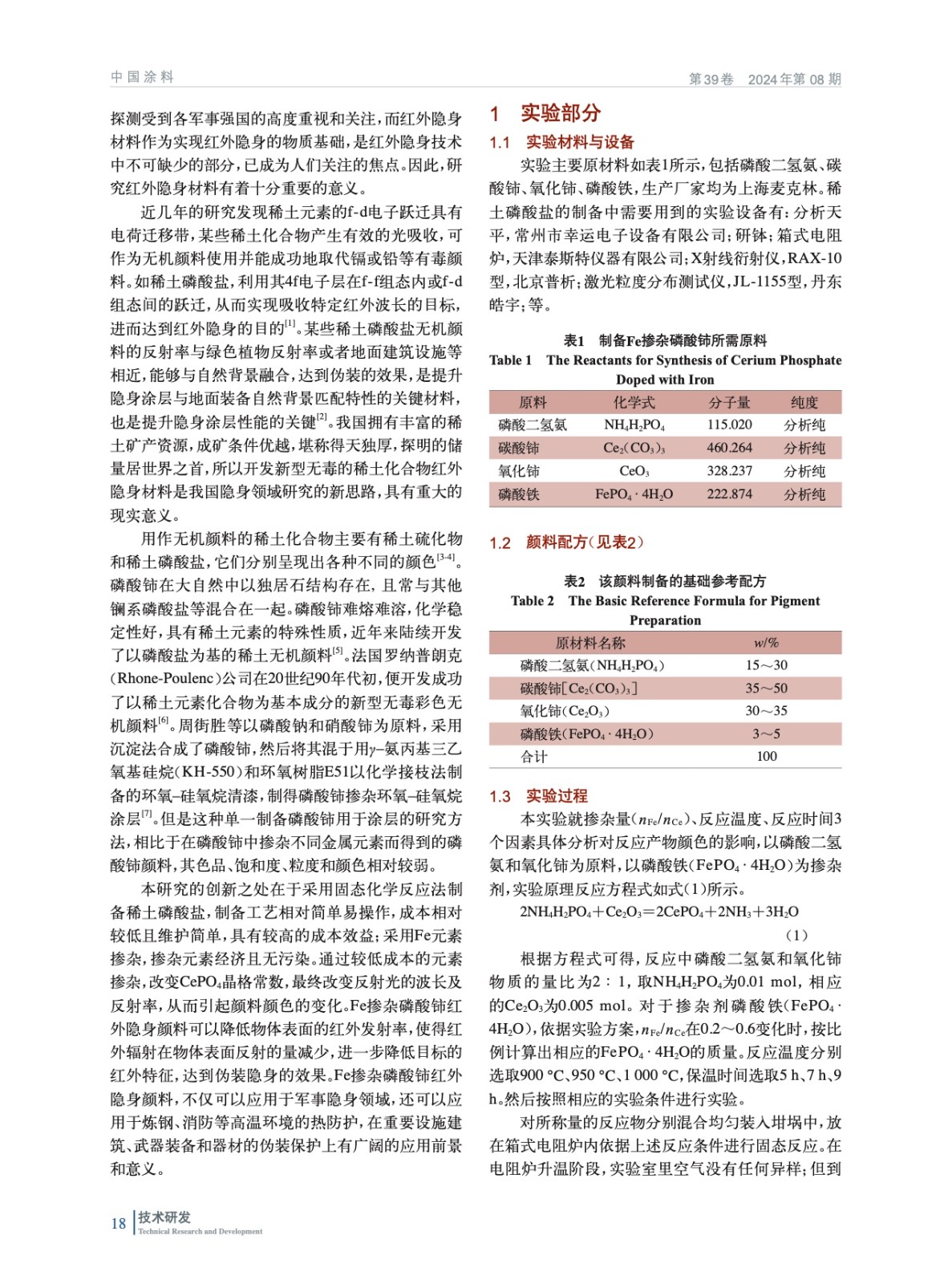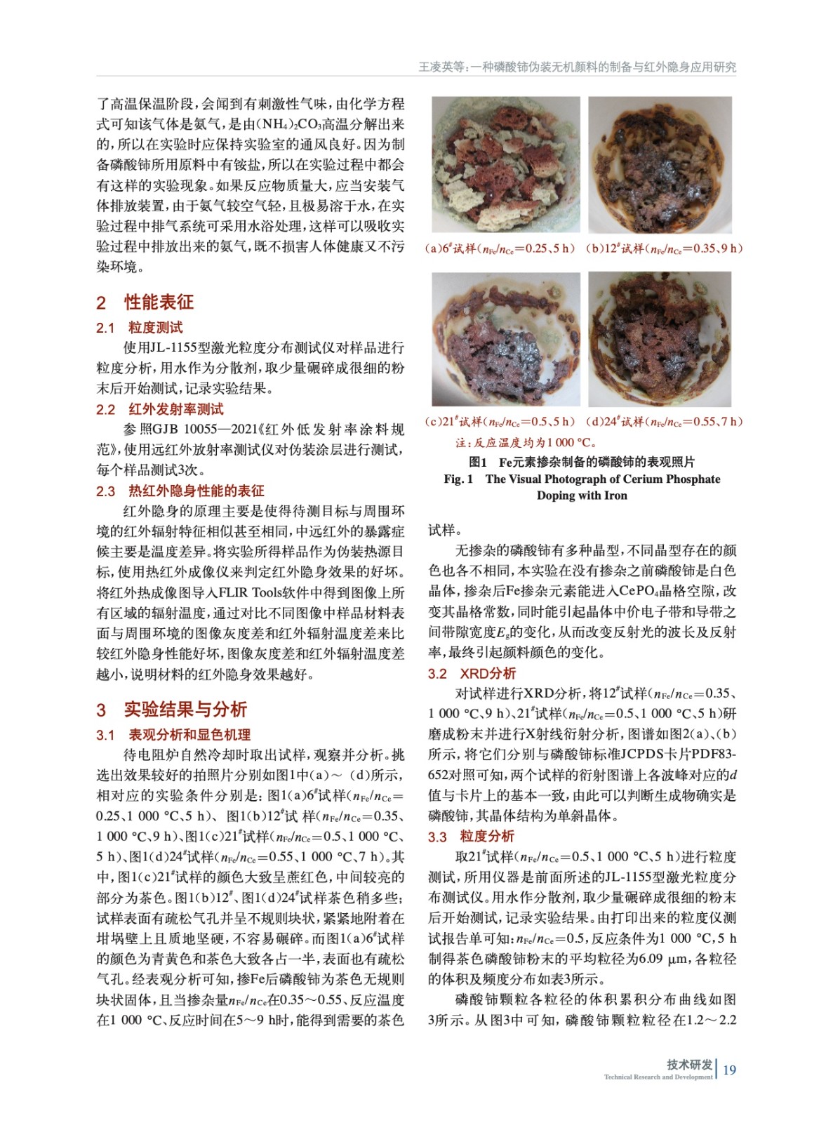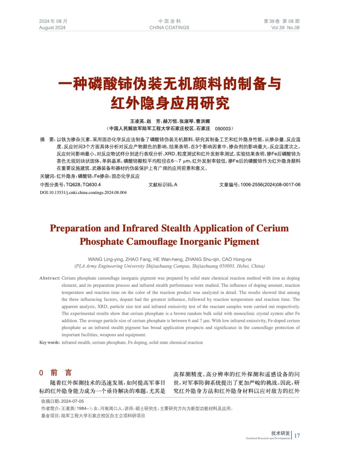 一種磷酸鈰偽裝無機顏料的制備與紅外隱身應用研究