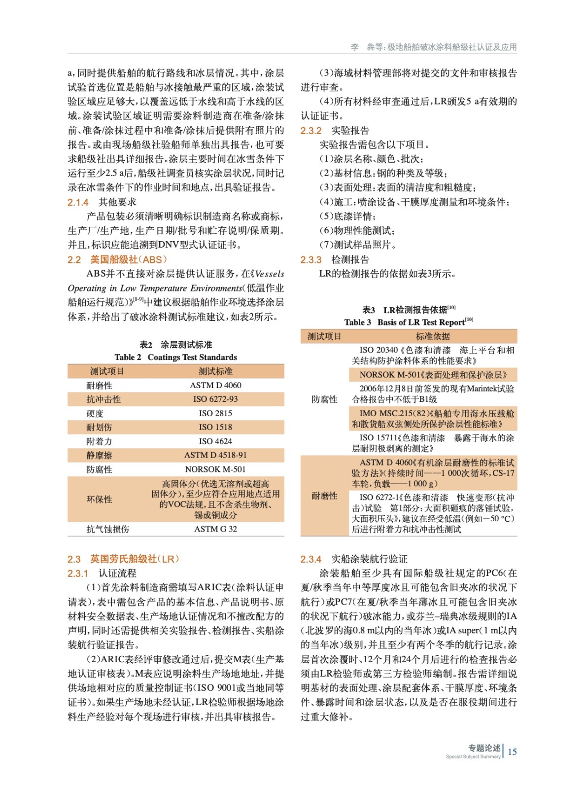 概述了國內外破冰涂料認證情況及應用現狀,結合世界主要船級社的認證流程、要求,以及各船級社的認證特點,提出了國內破冰涂料進行船級社認證和開拓市場的建議,并展望了未來破冰涂料的發展趨勢,以期對國內破冰涂料的發展和市場開拓提供支撐。