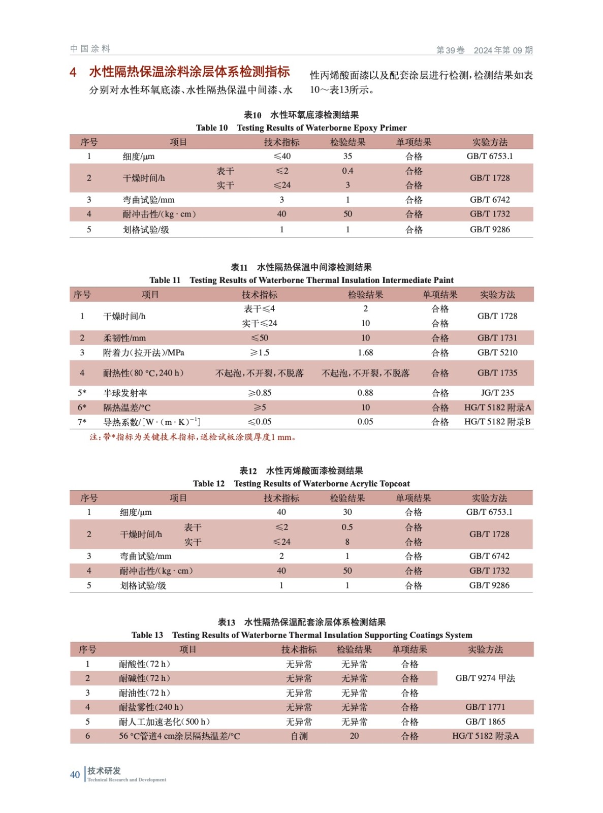 摘要:以“水性環氧底漆+水性隔熱保溫中間漆+水性丙烯酸面漆”構建隔熱保溫配套涂層體系。通過測試其耐腐蝕性、耐老化性、隔熱保溫等性能,對隔熱保溫配套涂層的性能進行評價。結果表明:水性環氧底漆A顏基比為0.85;水性隔熱保溫中間漆B選用規格為D90=110 μm的玻璃微珠,顏基比為0.77;水性丙烯酸面漆H羥值為4.2,n(—NCO)/n(—OH)=1時,涂層配套體系兼顧隔熱性能與耐腐蝕性,表現良好。