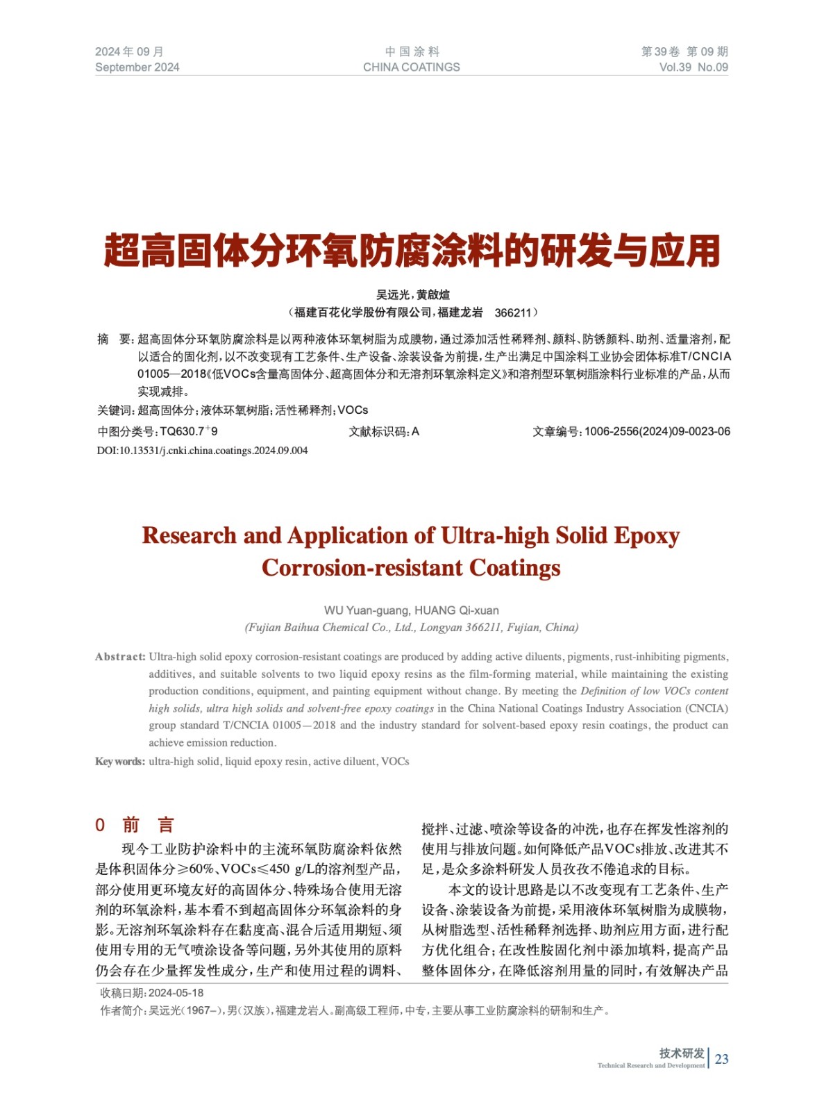 超高固體分環(huán)氧防腐涂料的研發(fā)與應(yīng)用