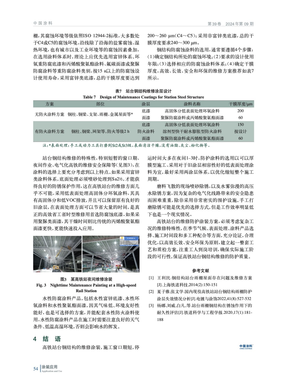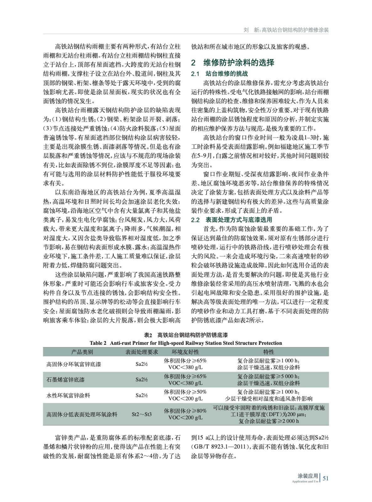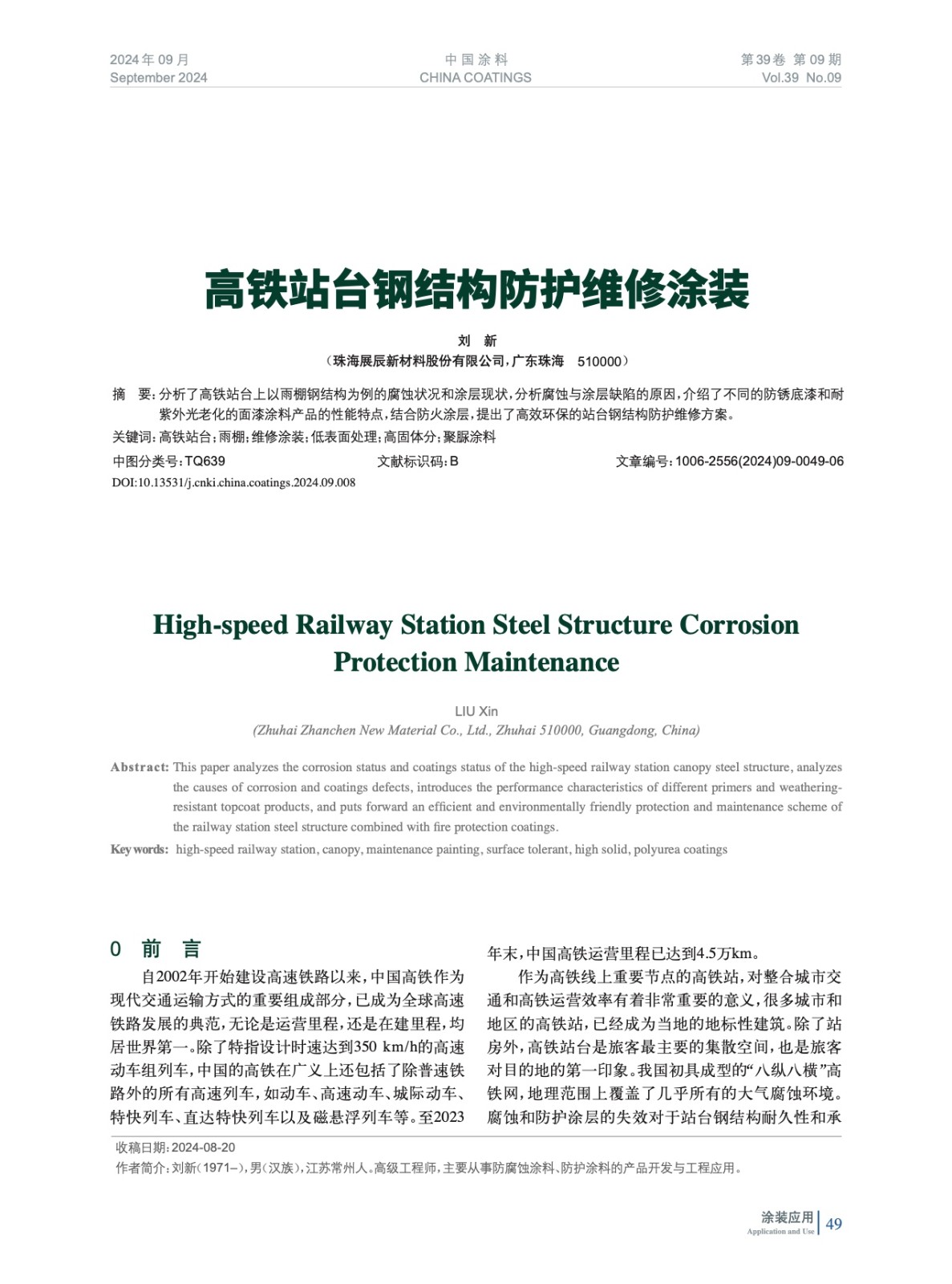 摘要:分析了高鐵站臺(tái)上以雨棚鋼結(jié)構(gòu)為例的腐蝕狀況和涂層現(xiàn)狀,分析腐蝕與涂層缺陷的原因,介紹了不同的防銹底漆和耐紫外光老化的面漆涂料產(chǎn)品的性能特點(diǎn),結(jié)合防火涂層,提出了高效環(huán)保的站臺(tái)鋼結(jié)構(gòu)防護(hù)維修方案。