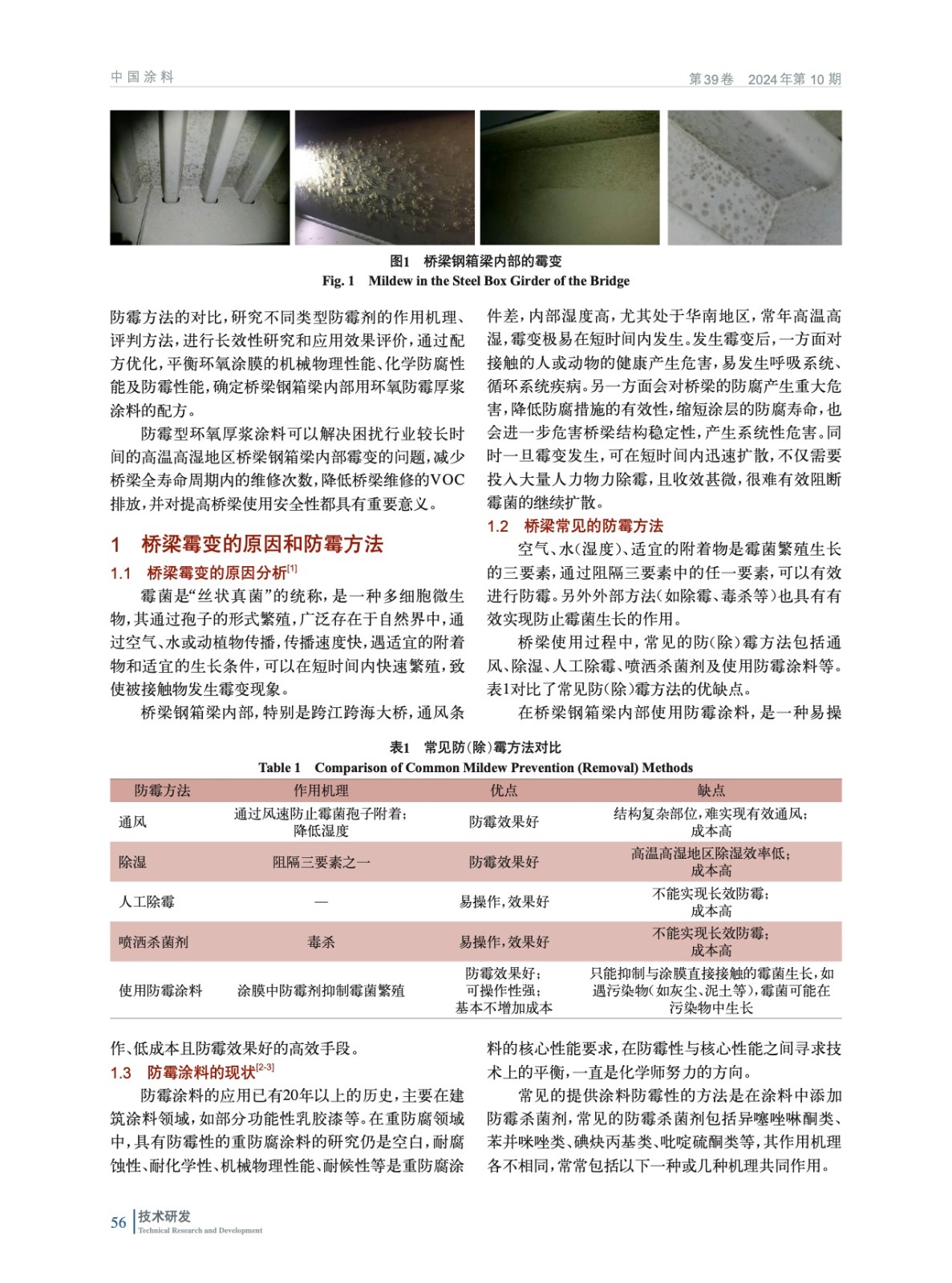 應(yīng)用于橋梁鋼箱梁內(nèi)部防霉涂料的研制與性能研究