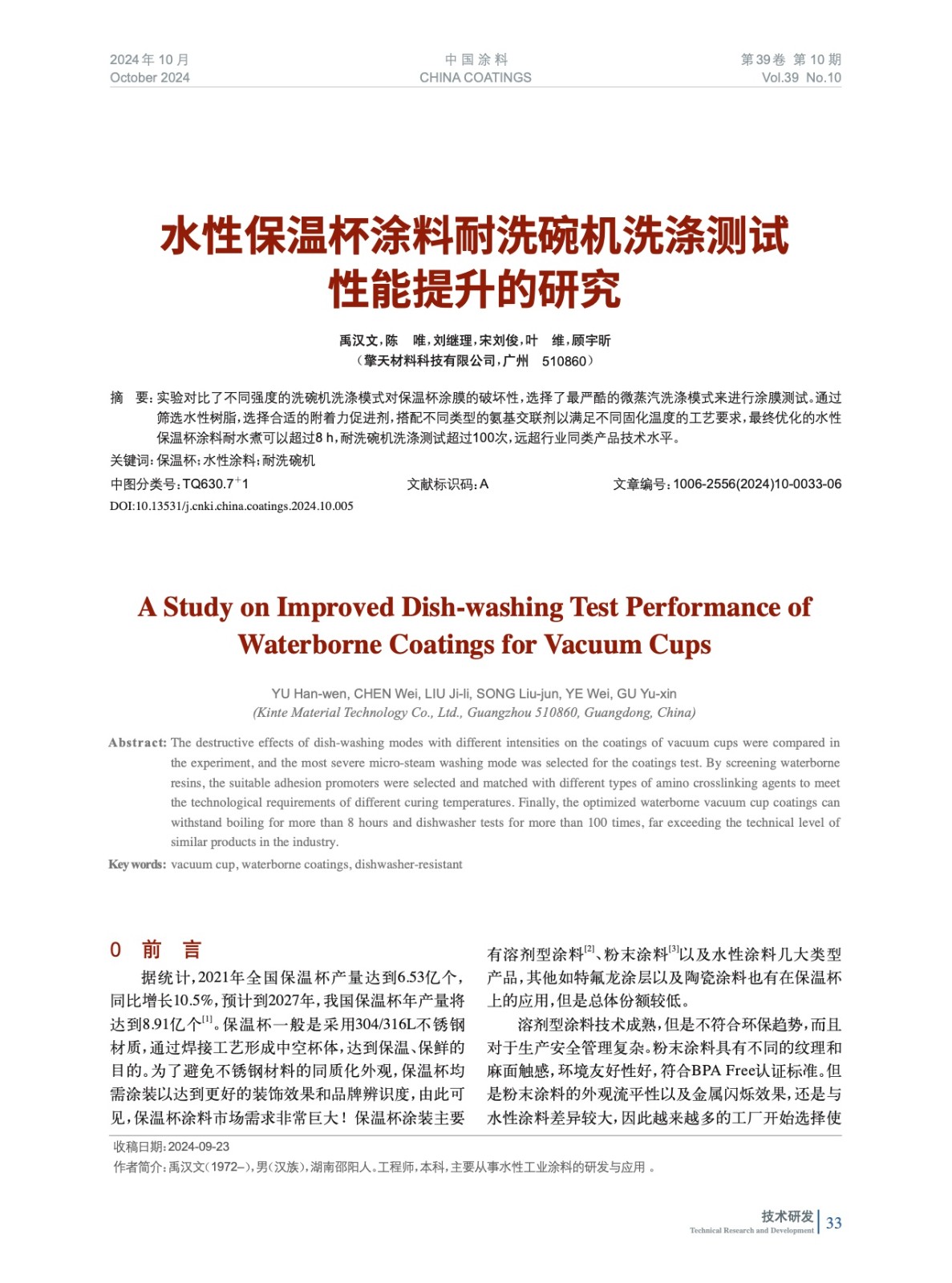 本文系作者@禹漢文,陳 唯,劉繼理,宋劉俊,葉 維,顧宇昕 授權中國涂料網發表,并經中國涂料網編輯,未經允許不得轉載,如需轉載請聯系chinacoatingnet@vip.163.com