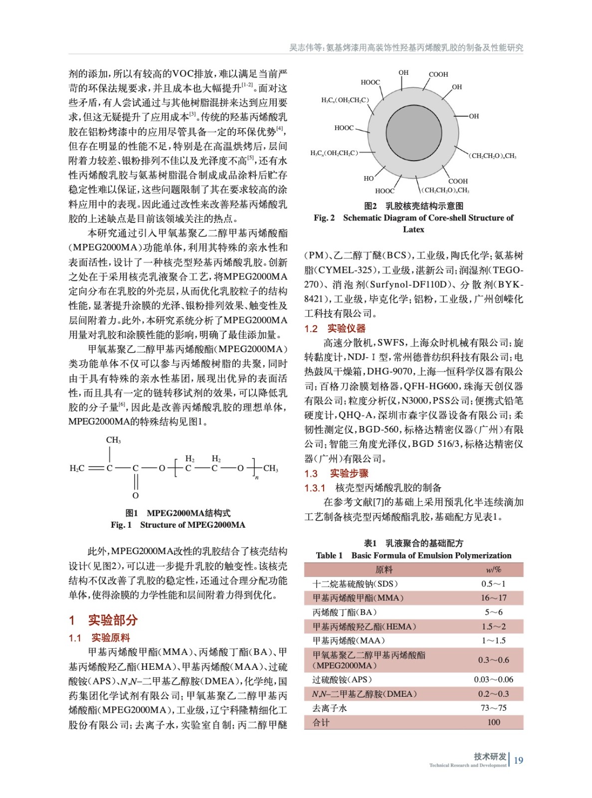 氨基烤漆用高裝飾性羥基丙烯酸乳膠的制備及性能研究