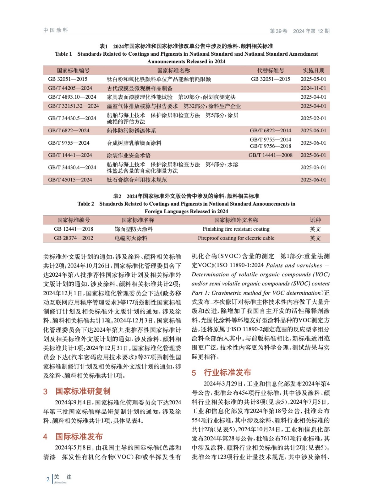 2024年涂料顏料行業(yè)主要相關(guān)標(biāo)準(zhǔn)匯總