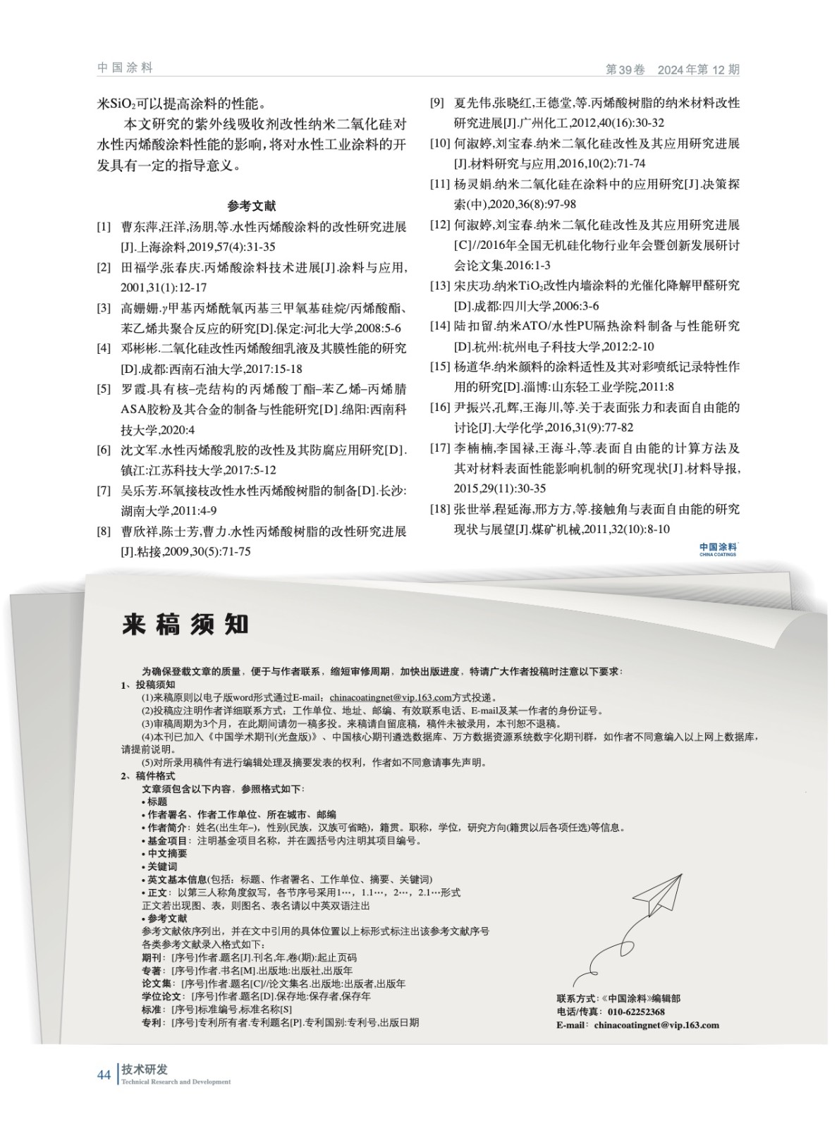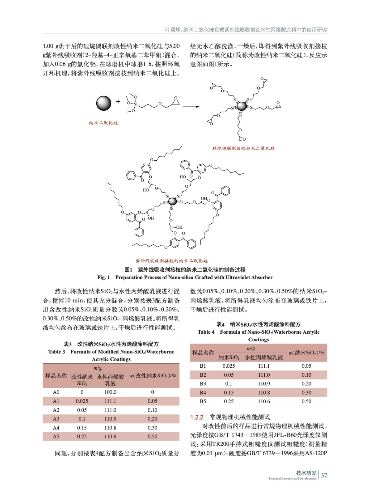 納米二氧化硅負載紫外線吸收劑在水性丙烯酸涂料中的應用研究