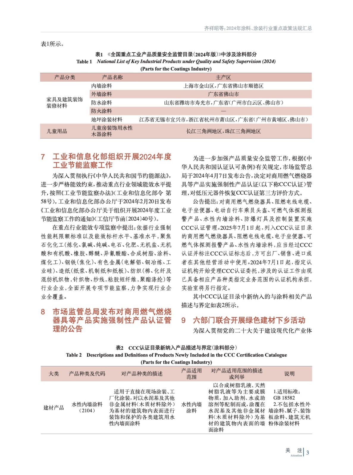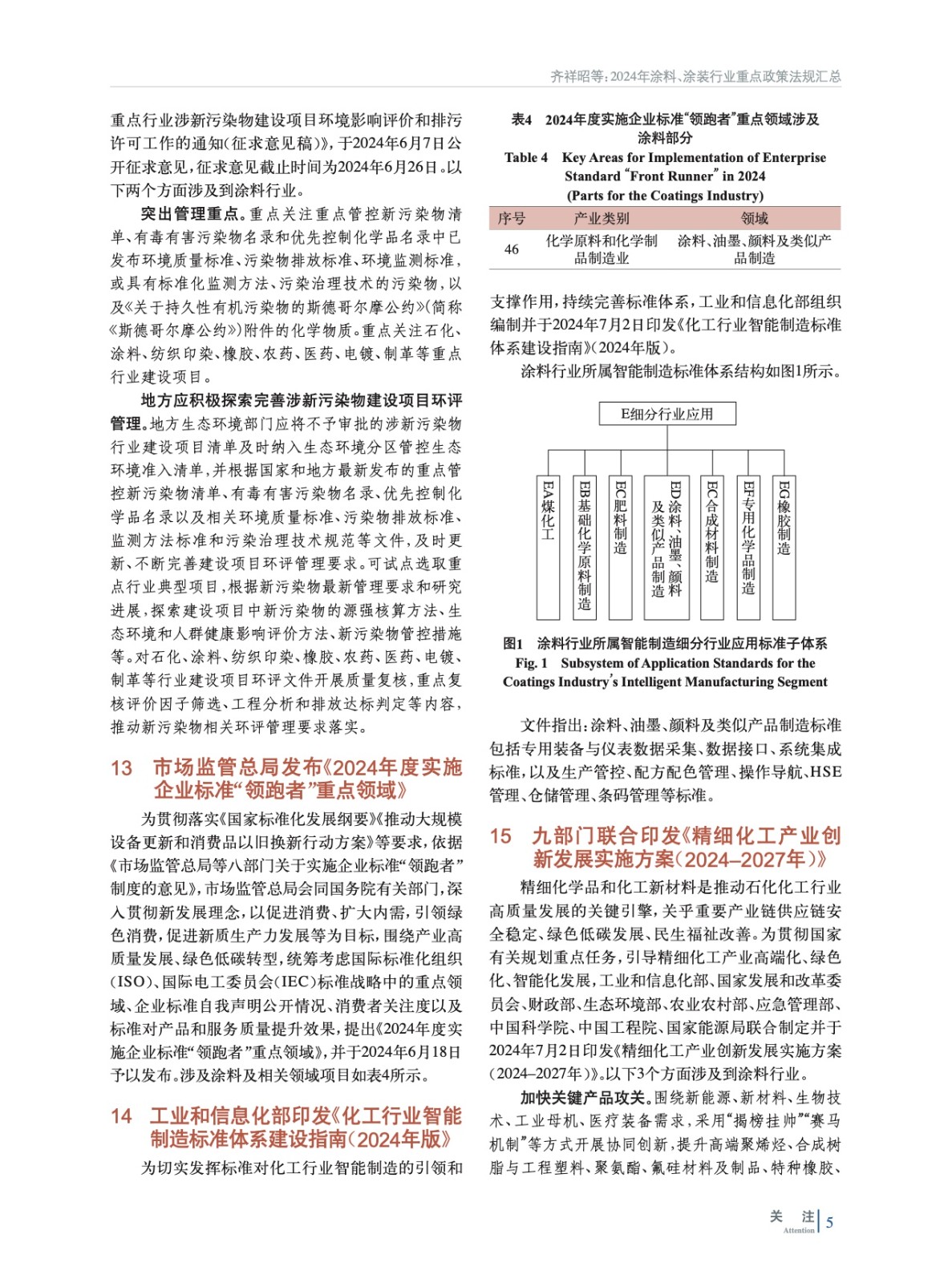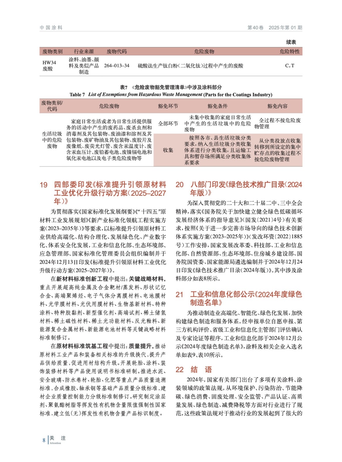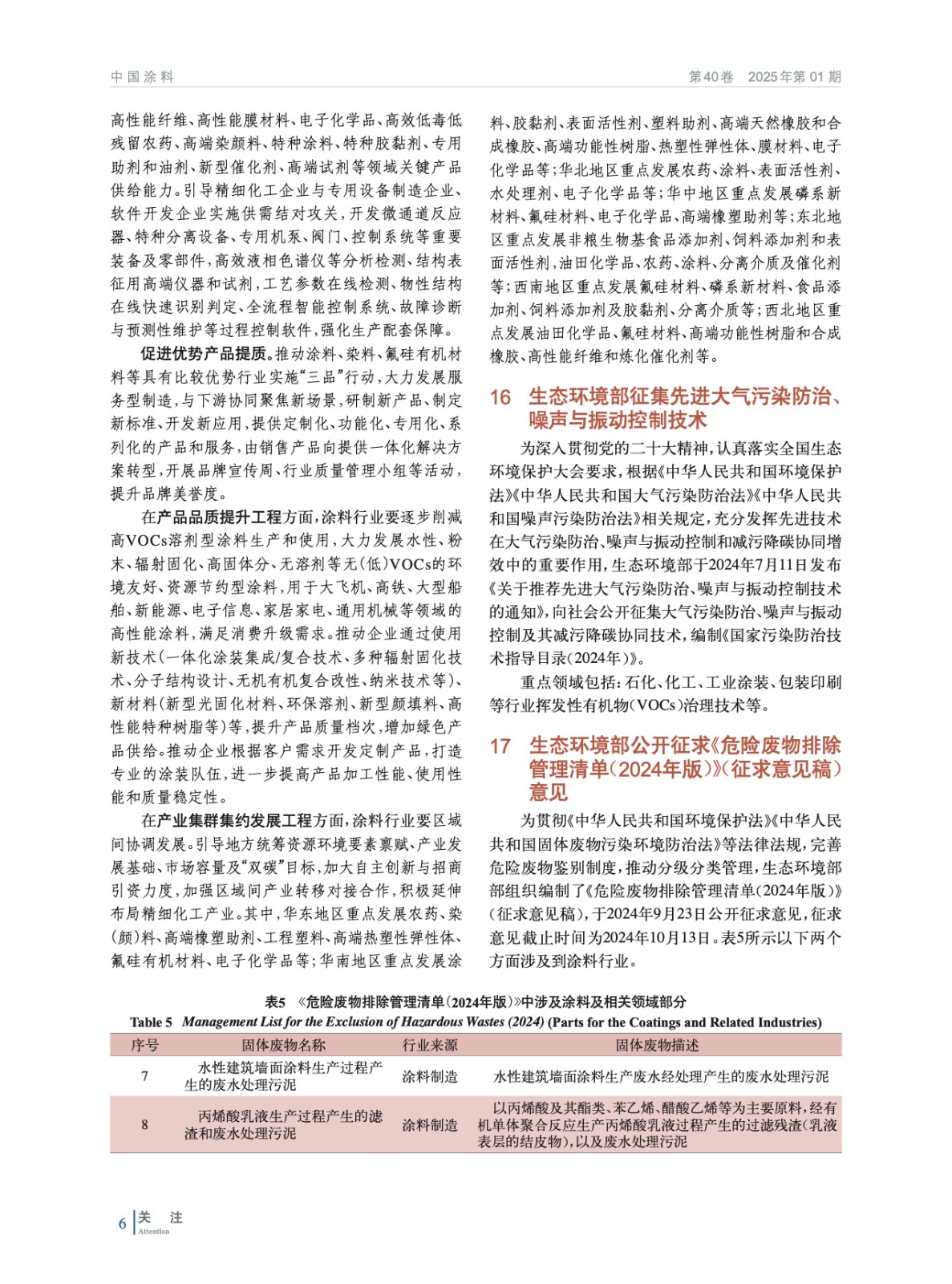 摘要:編者按:2024年,中國(guó)涂料行業(yè)及上下游產(chǎn)業(yè)鏈?zhǔn)艿奖姸嗖淮_定的各種因素影響,但持續(xù)轉(zhuǎn)型升級(jí)的腳步未曾停歇。2024年國(guó)家有關(guān)部門(mén)出臺(tái)了多項(xiàng)涉及涂料、涂裝領(lǐng)域的政策法規(guī),《原材料工業(yè)數(shù)字化轉(zhuǎn)型工作方案(2024–2026年)》《2024–2025年節(jié)能降碳行動(dòng)方案》《化工行業(yè)智能制造標(biāo)準(zhǔn)體系建設(shè)指南(2024年版)》《精細(xì)化工產(chǎn)業(yè)創(chuàng)新發(fā)展實(shí)施方案(2024–2027年)》《國(guó)家危險(xiǎn)廢物名錄(2025年版)》等重點(diǎn)政策法規(guī)以及綠色建材下鄉(xiāng)活動(dòng)等將對(duì)行業(yè)未來(lái)高質(zhì)量發(fā)展起到重要作用。