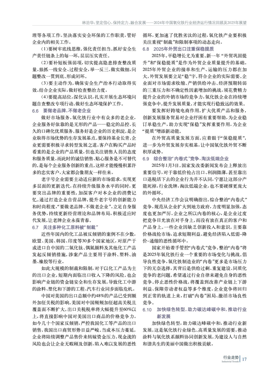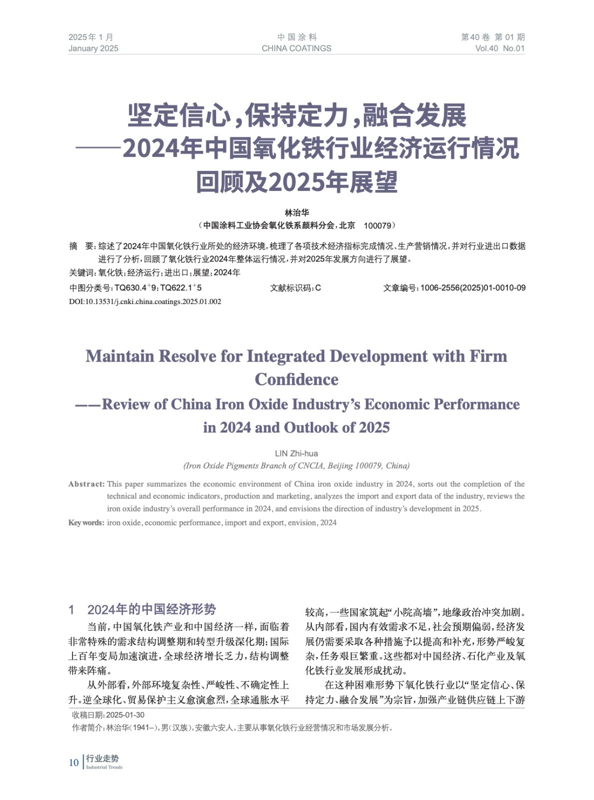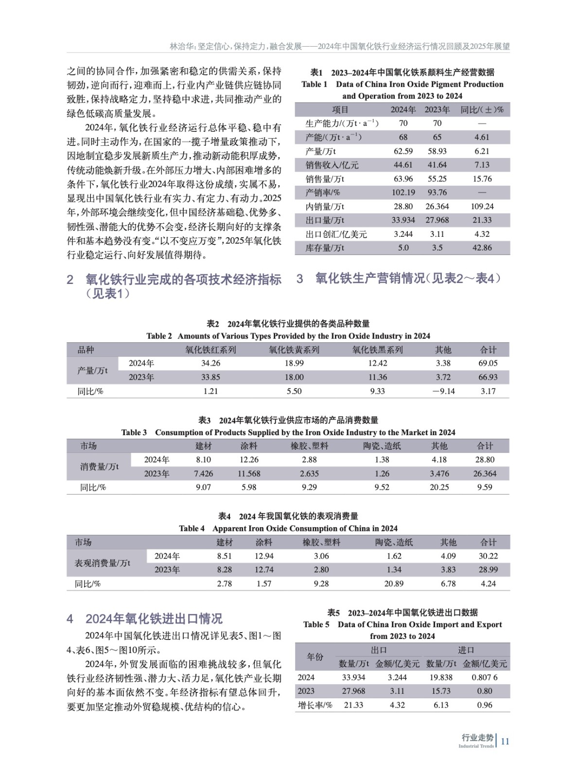 堅定信心,保持定力,融合發(fā)展——2024年中國氧化鐵行業(yè)經(jīng)濟運行情況回顧及2025年展望
